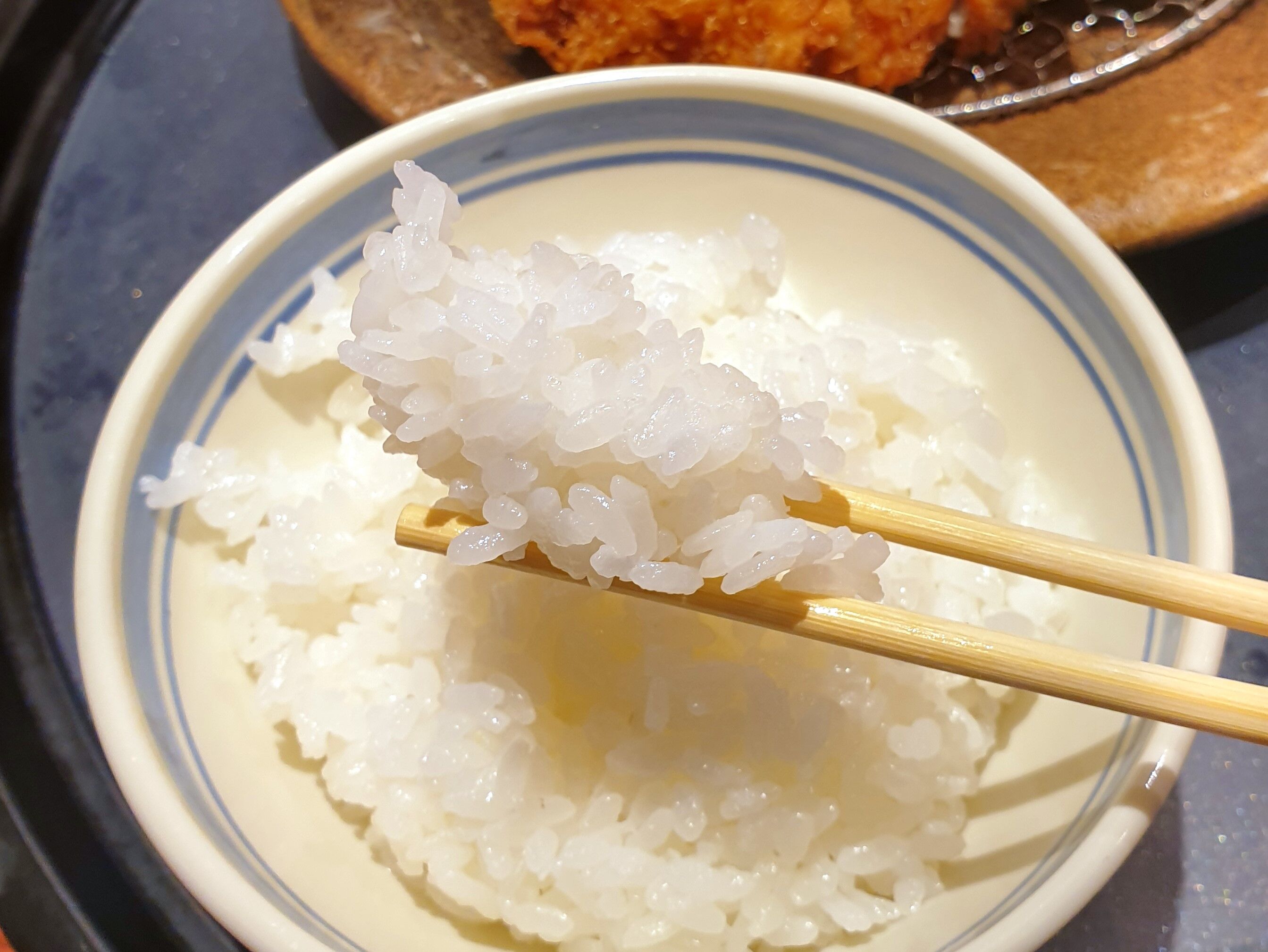 ご飯はふっくらツヤツヤで、とんかつと合わせてモリモリ食が進みます!