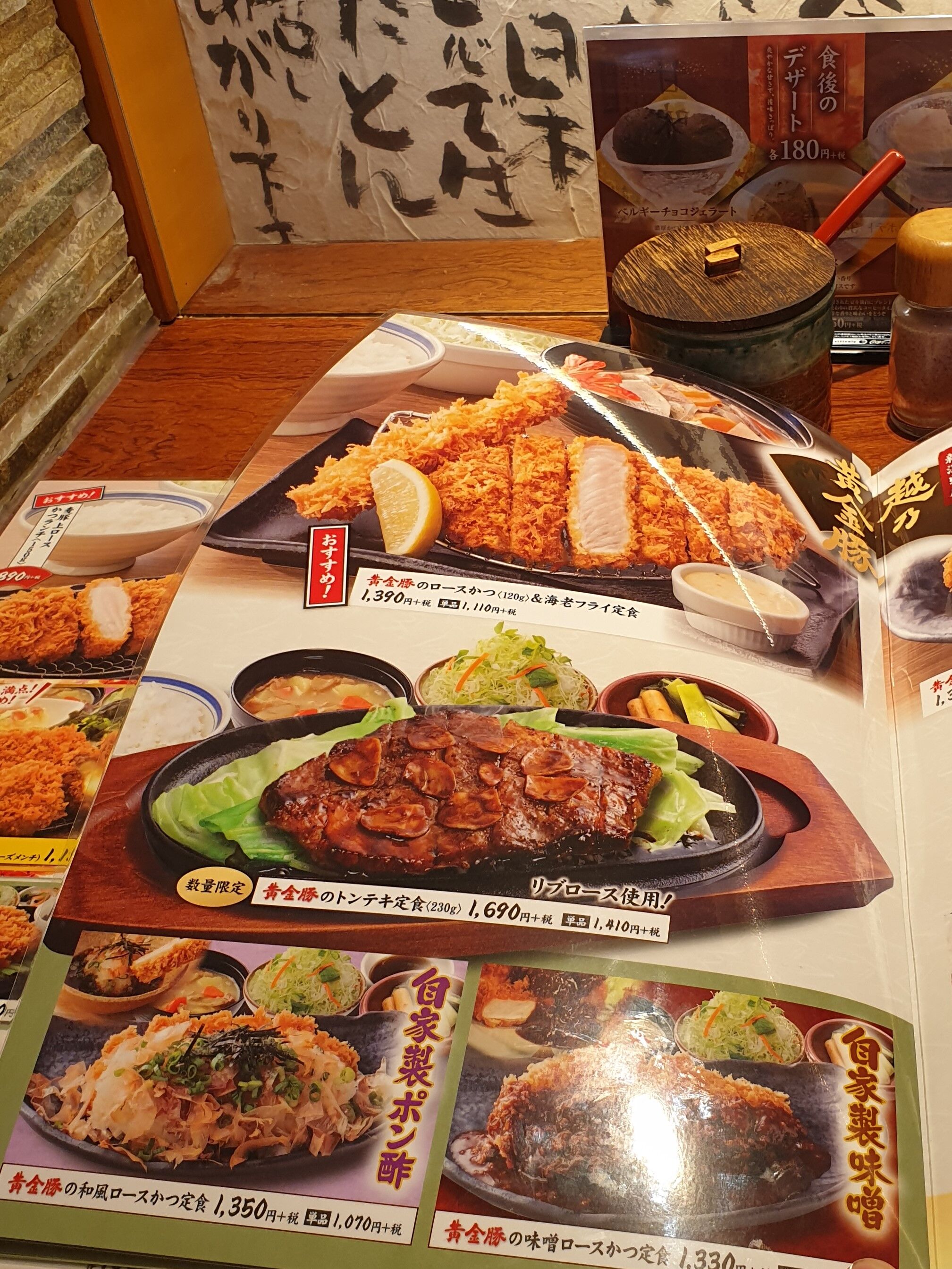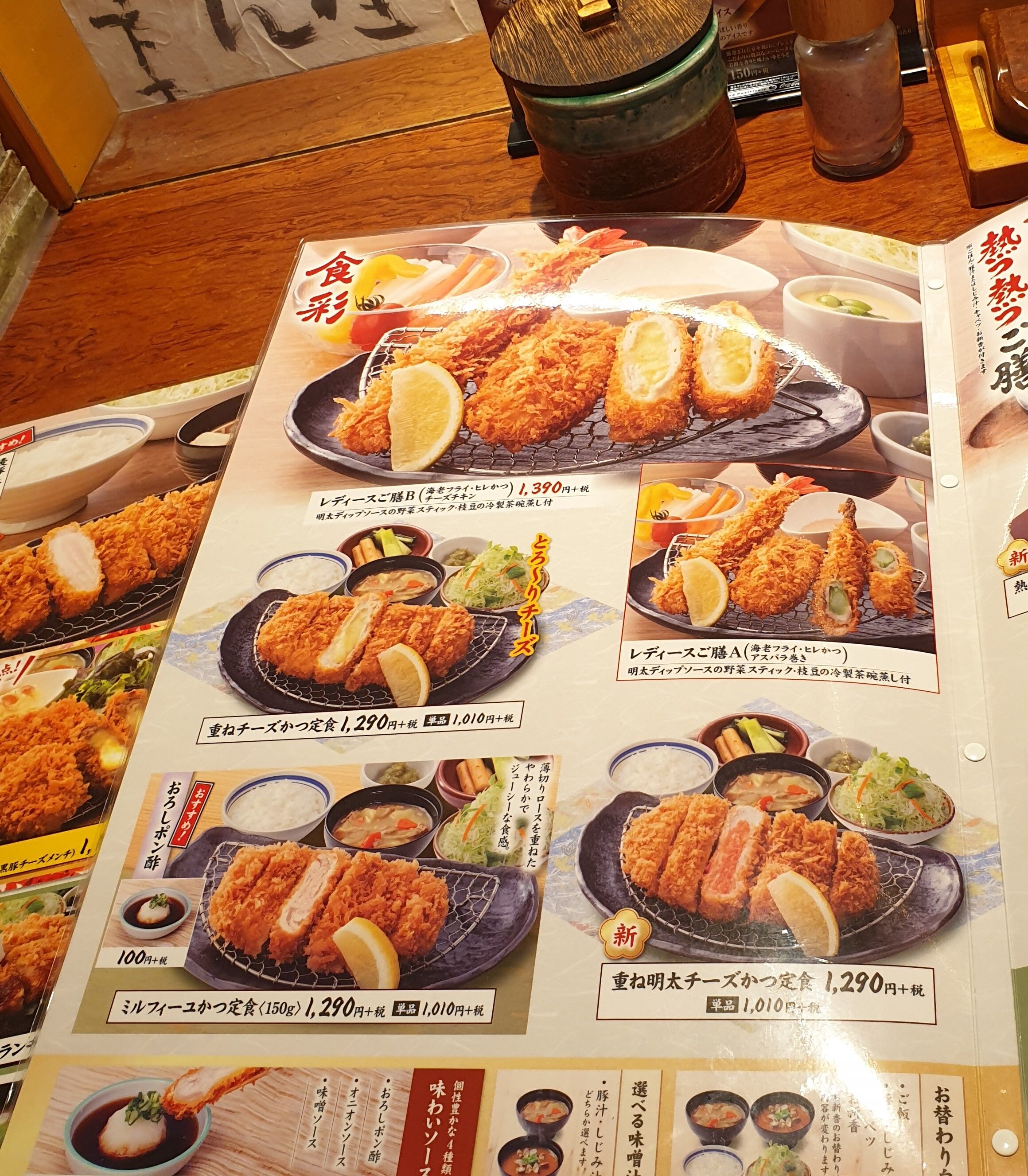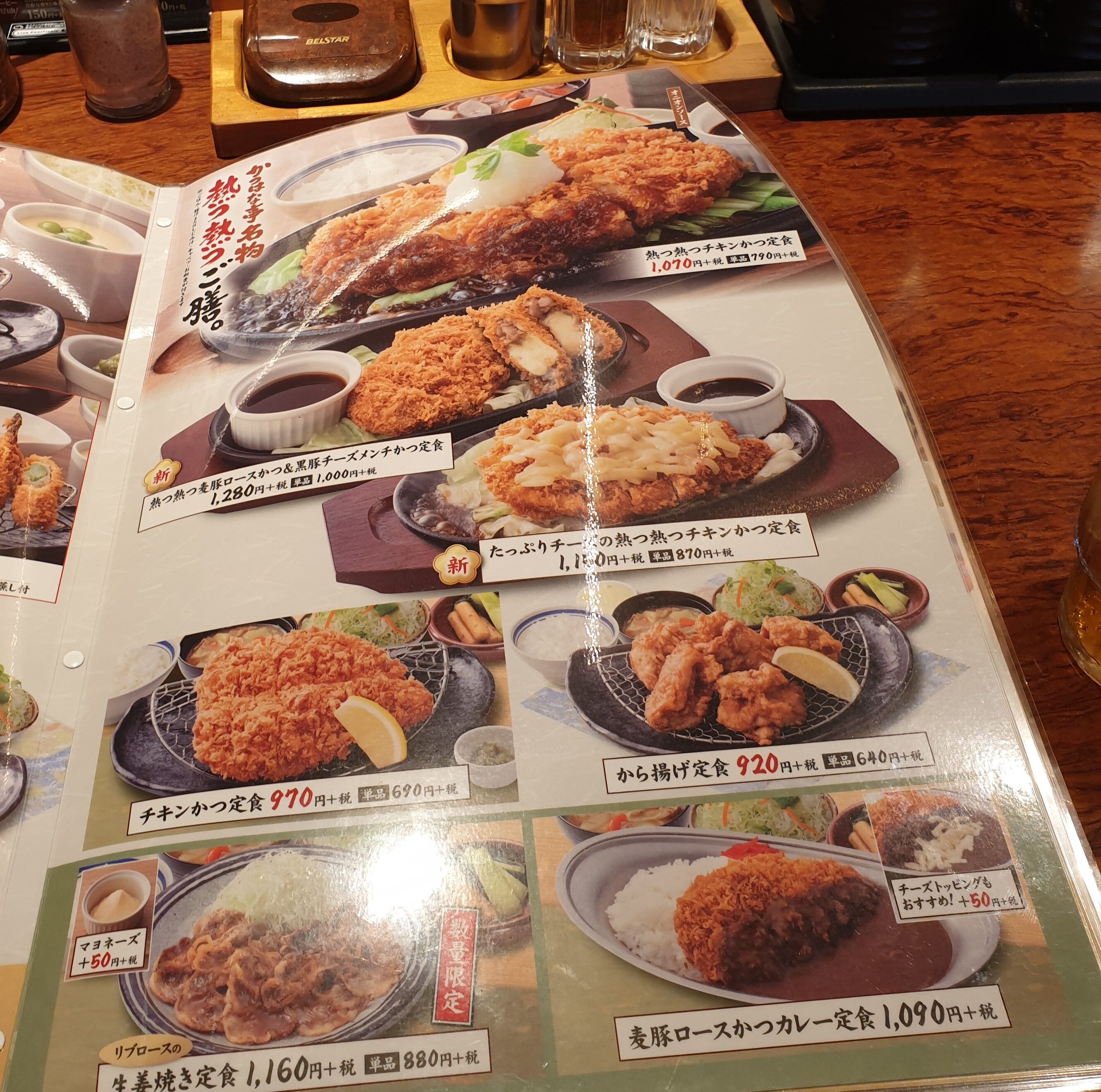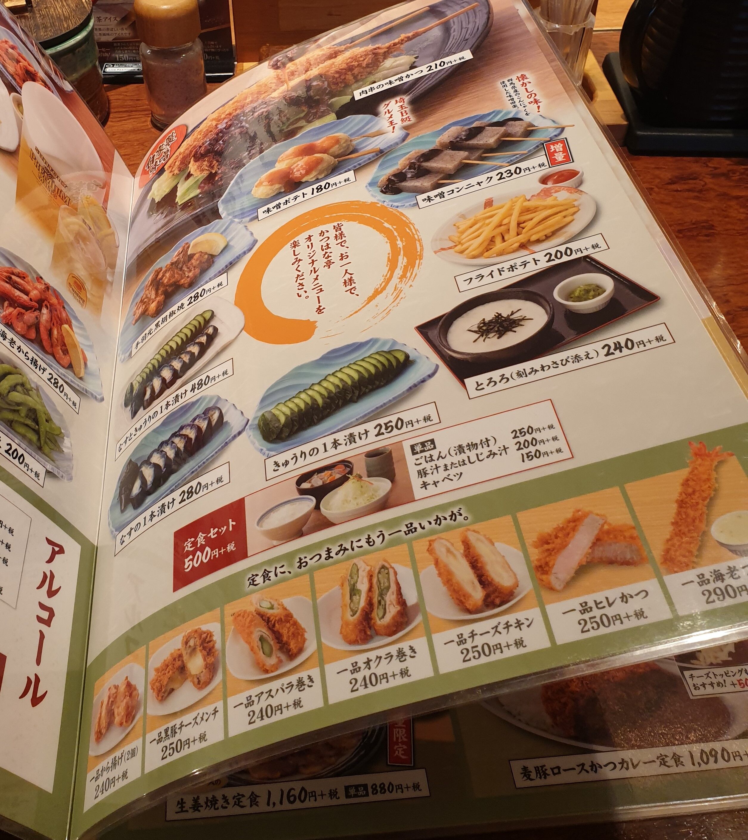 ロースカツメニュー、トンテキメニュー、味付けかつメニュー