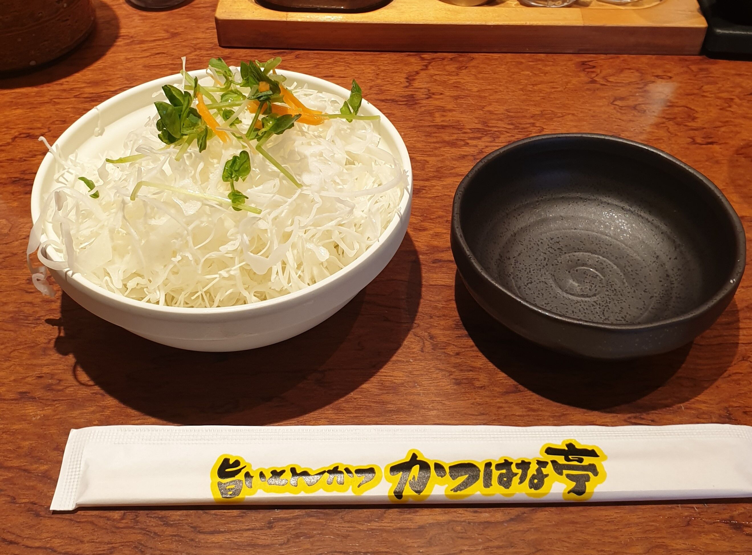 まずは、ソースを入れる容器とキャベツサラダが登場!