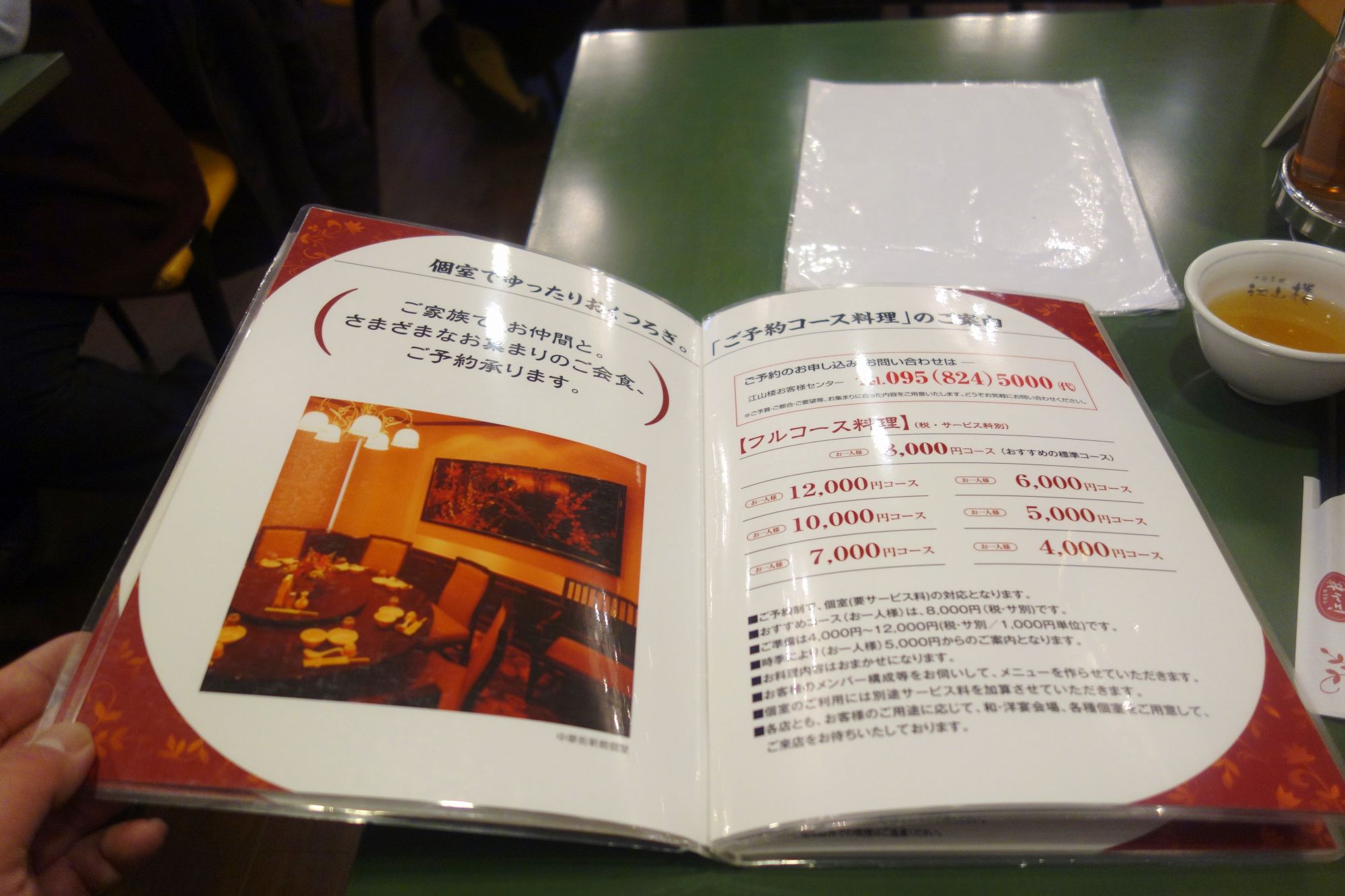 まずは、個室コース料理の案内