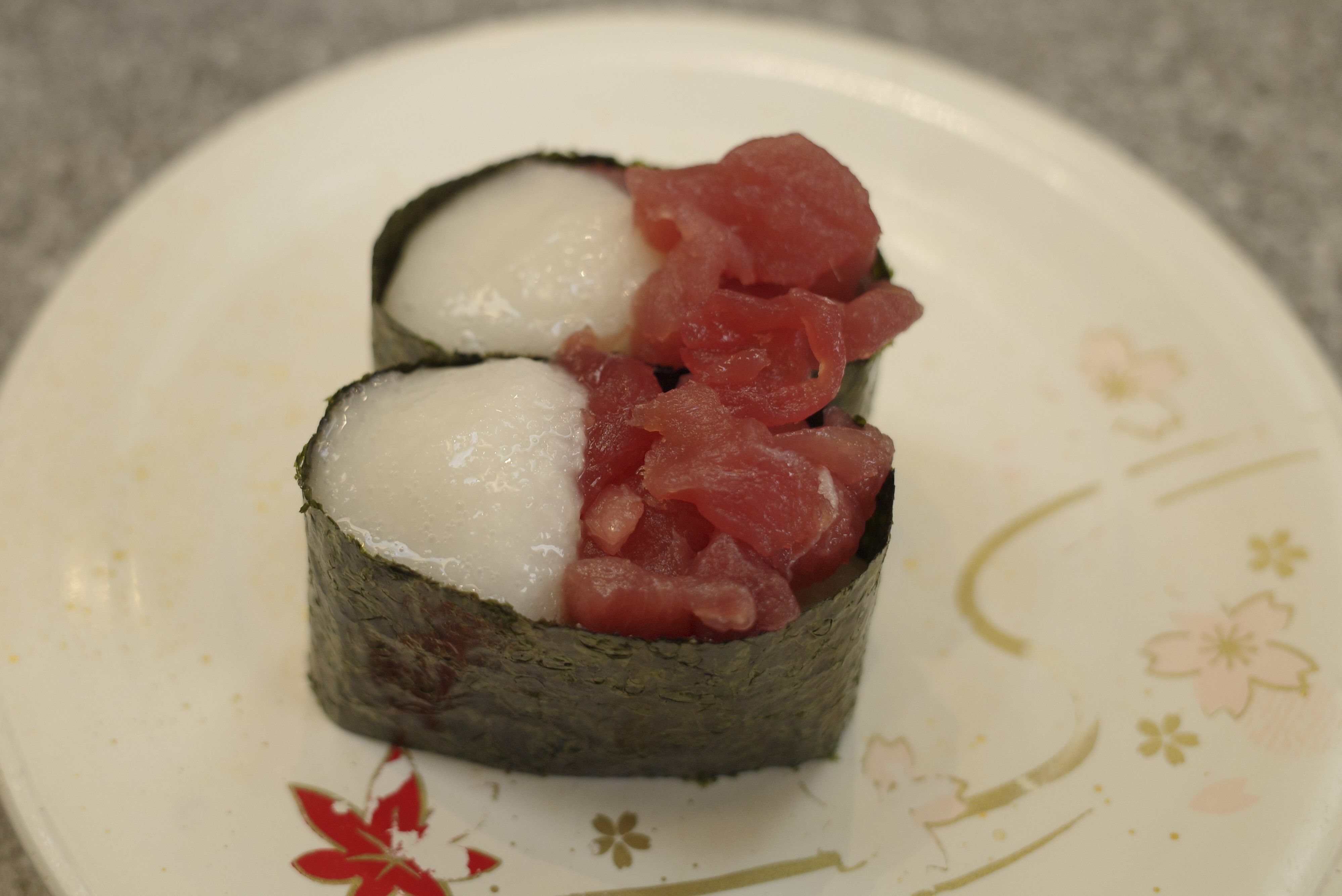 最後は、赤身のまぐろの旨味と、ねばーるとろろがマッチした「まぐろとろろ」140円を食べて完食!ごちそうさまでした!