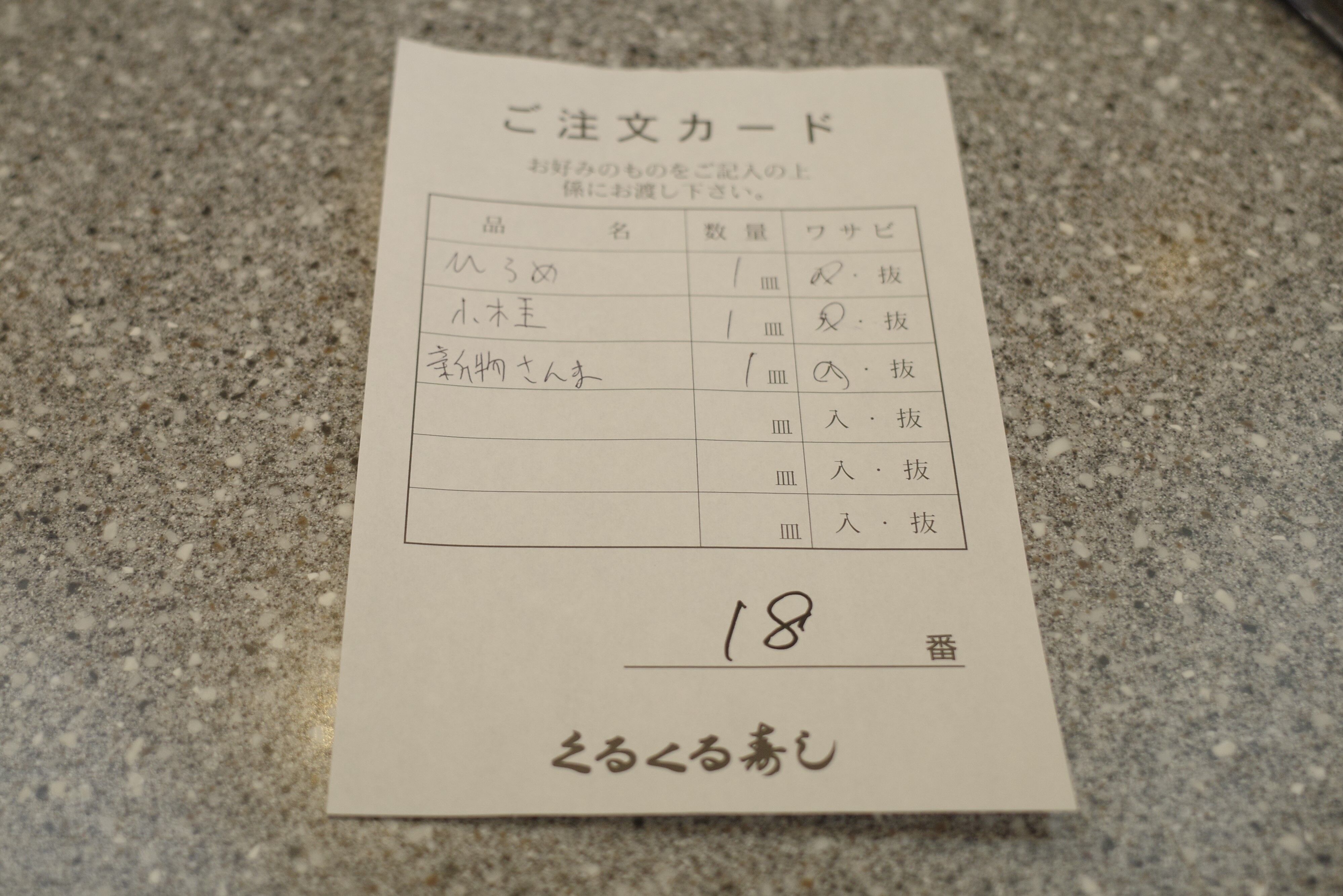 ちなみに「くるくる寿し」は、紙に書いてオーダーするスタイルをとっているとのこと。