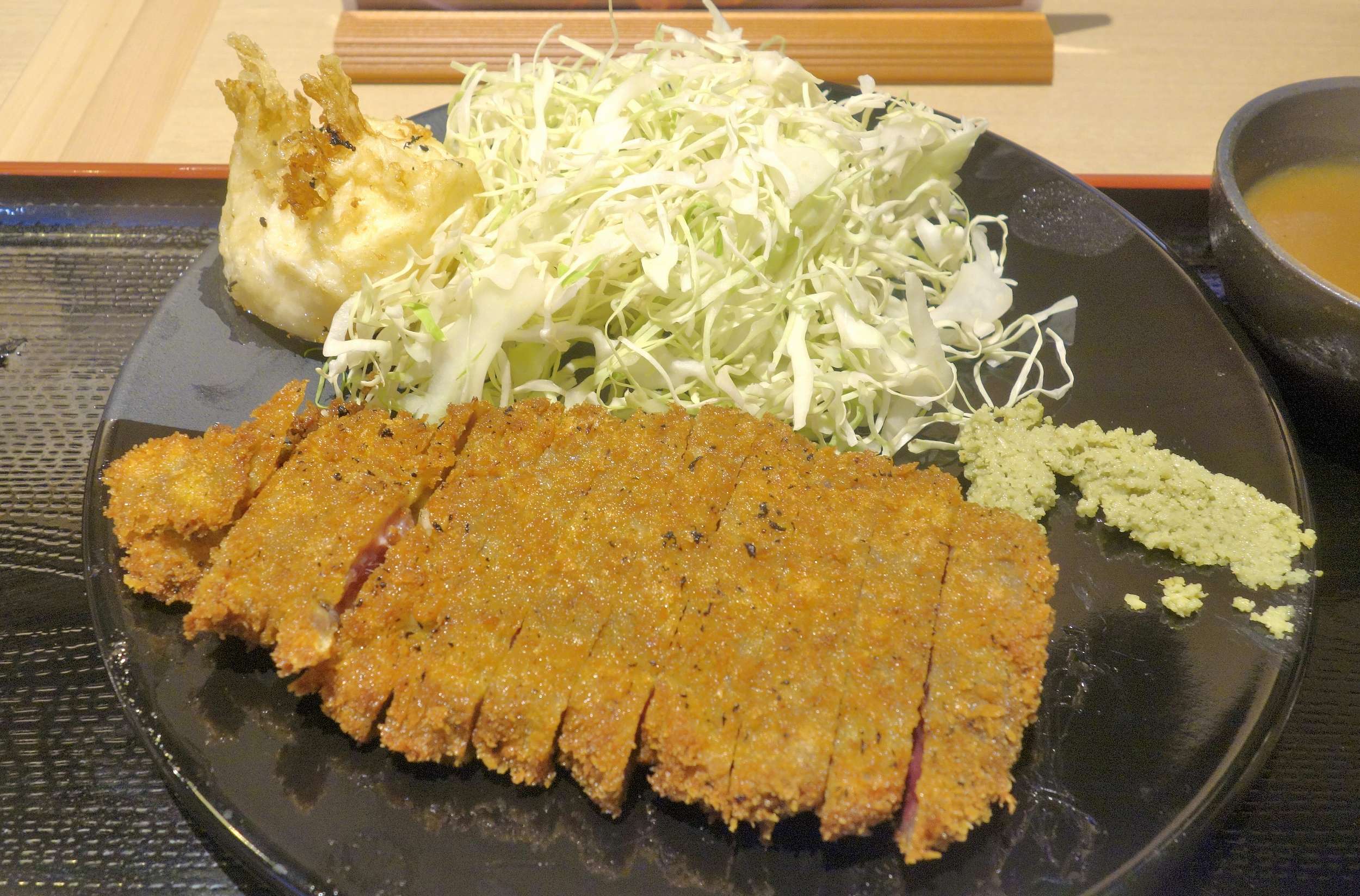 黒毛和牛カツ京玉膳並の牛カツは、赤身のさっぱりさを感じられる部分は前回同様の感想ですが、黒毛和牛を使った事によるのか?旨味が大変強く感じ、素のままでもしっかり美味しいです。