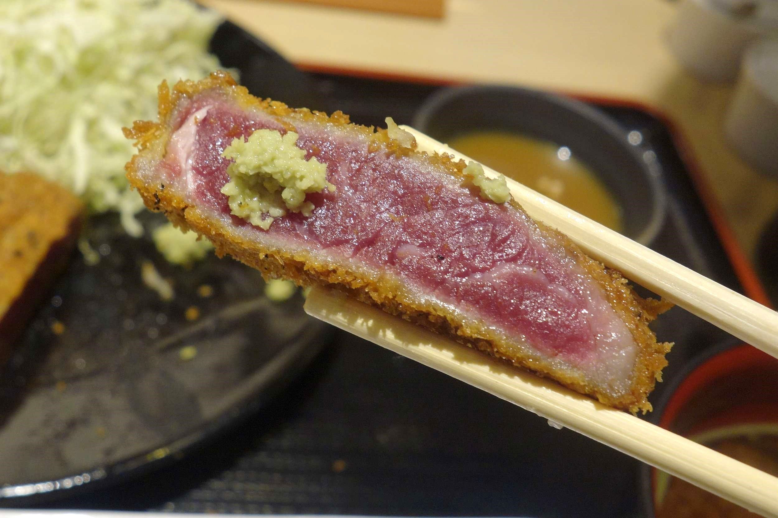 わさびとともに牛カツを楽しむのが一番美味しいです。
