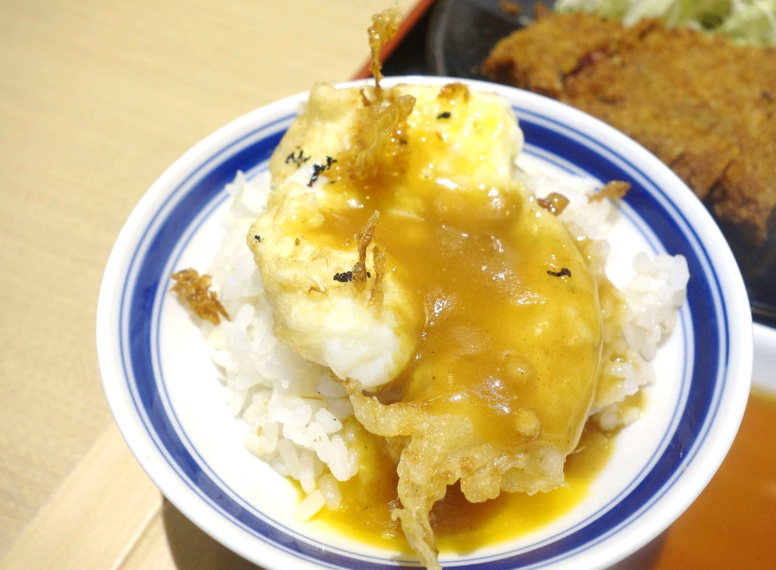 和の出汁が効いたカレーソースを垂らしてまずはご飯を完食します。