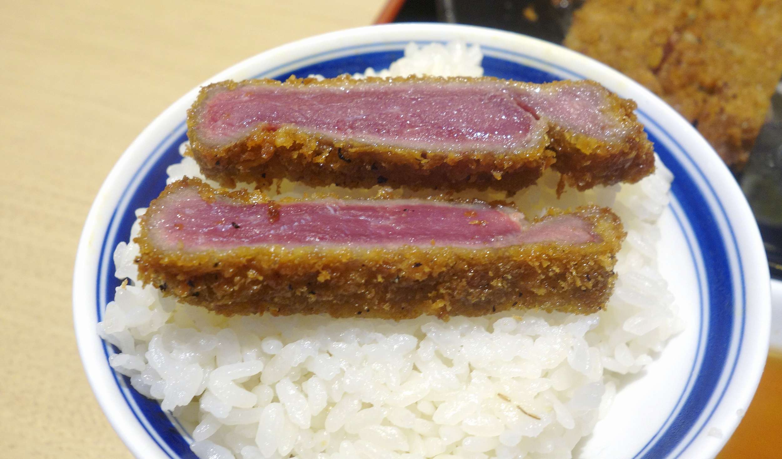 ご飯おかわり後は牛カツをオン・ザ・ライスして堪能。黒毛和牛使用の牛カツは肉の旨味が強く、オン・ザ・ライスの際には何もつけずとも美味しいです。