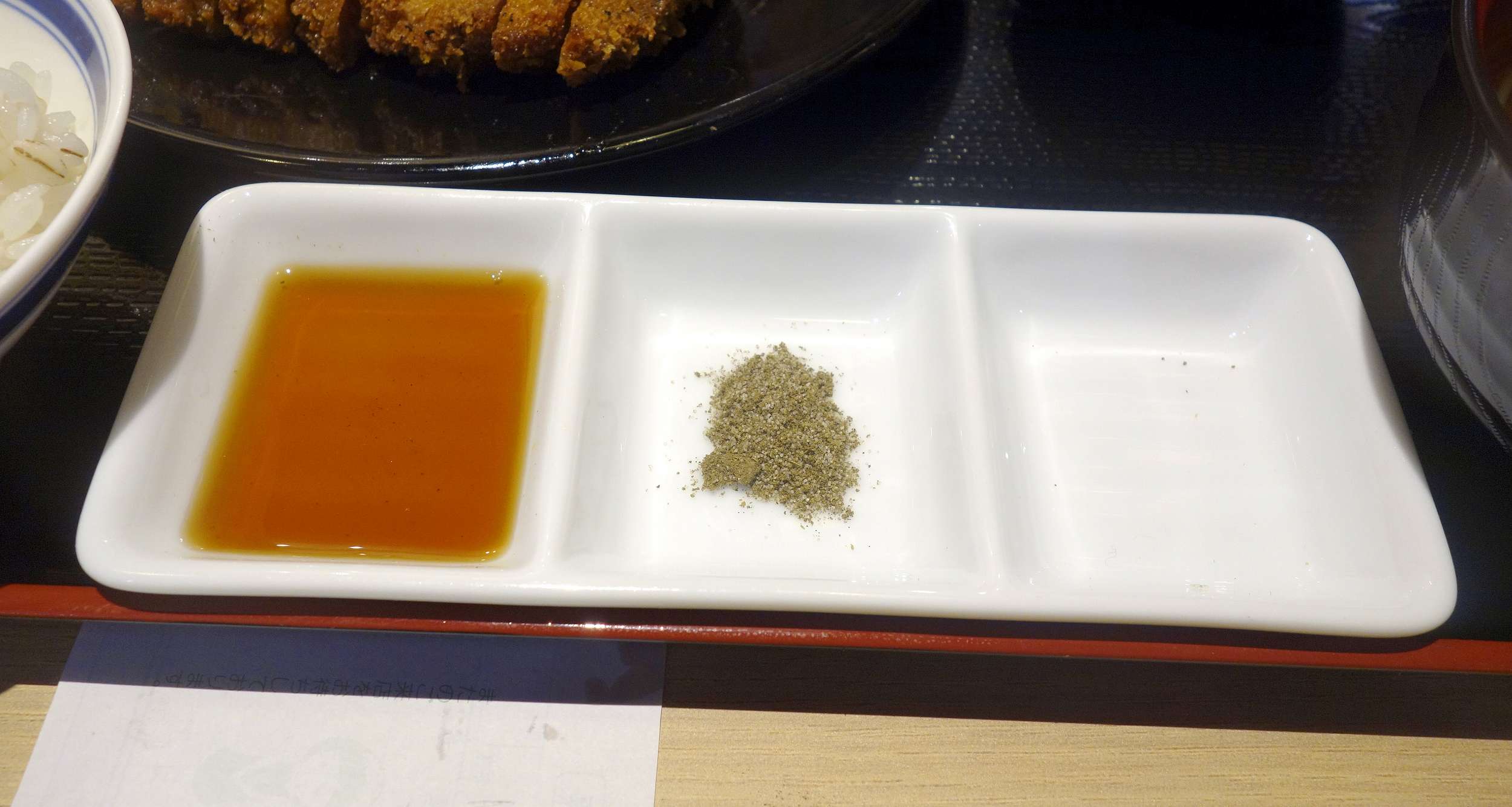 醤油と山椒塩が入った調味料入れにて料理は以上です。