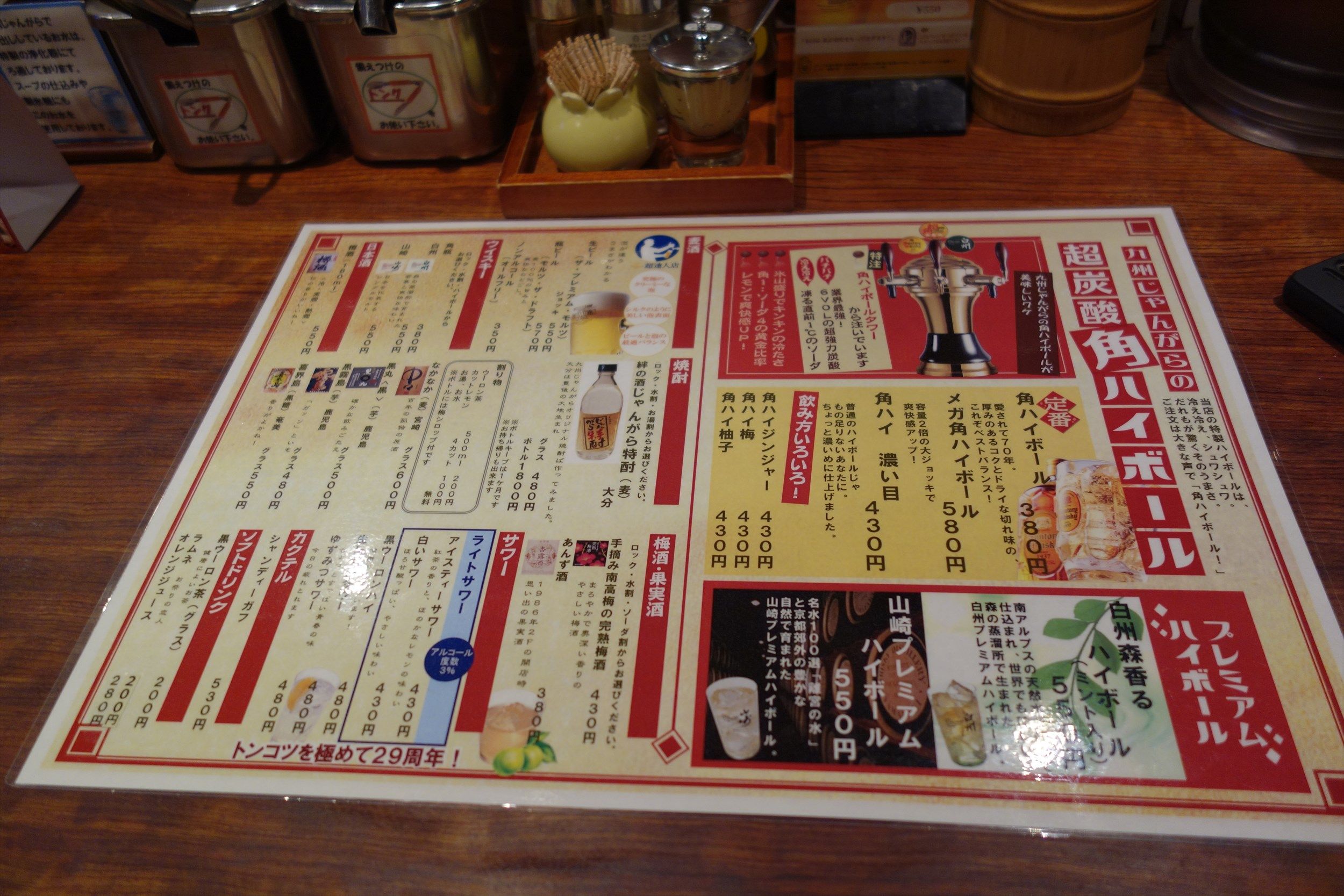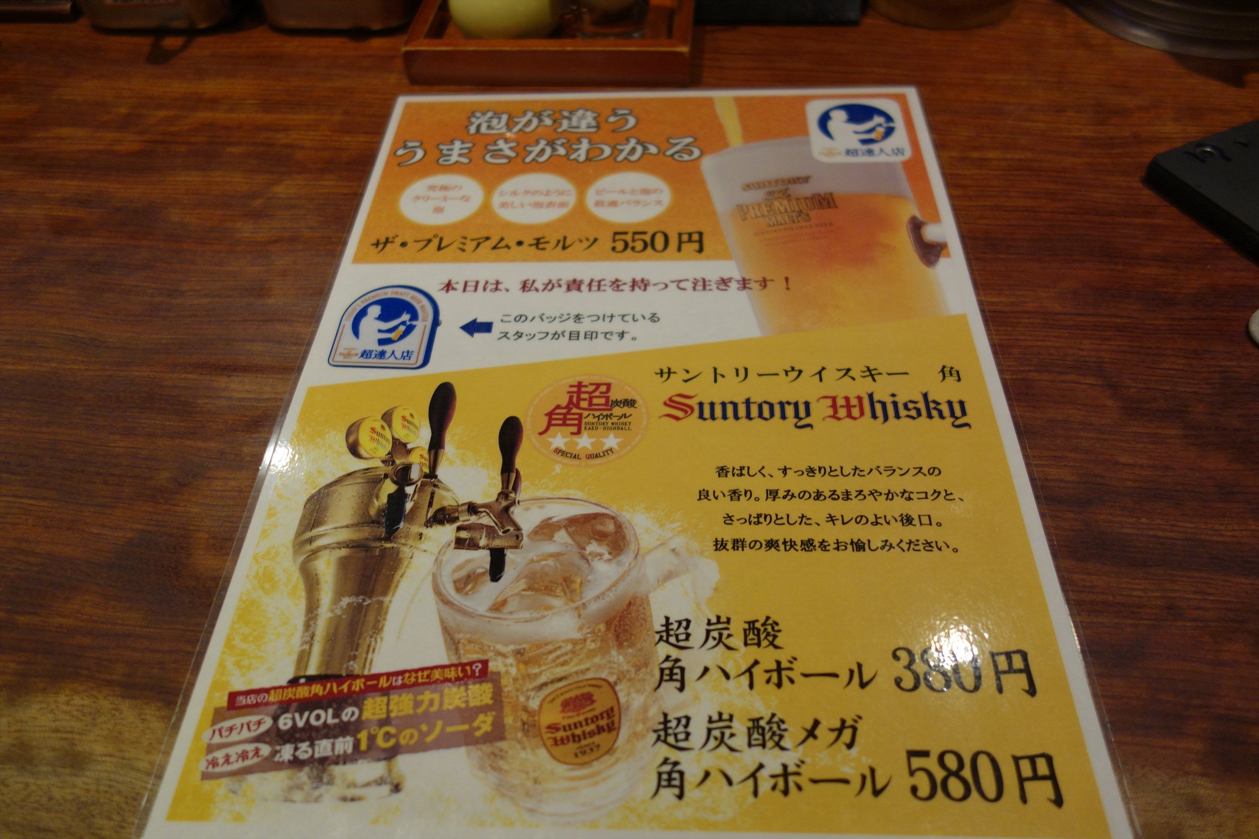 プレミアムモルツ、超炭酸角ハイボールでメニューは以上です。