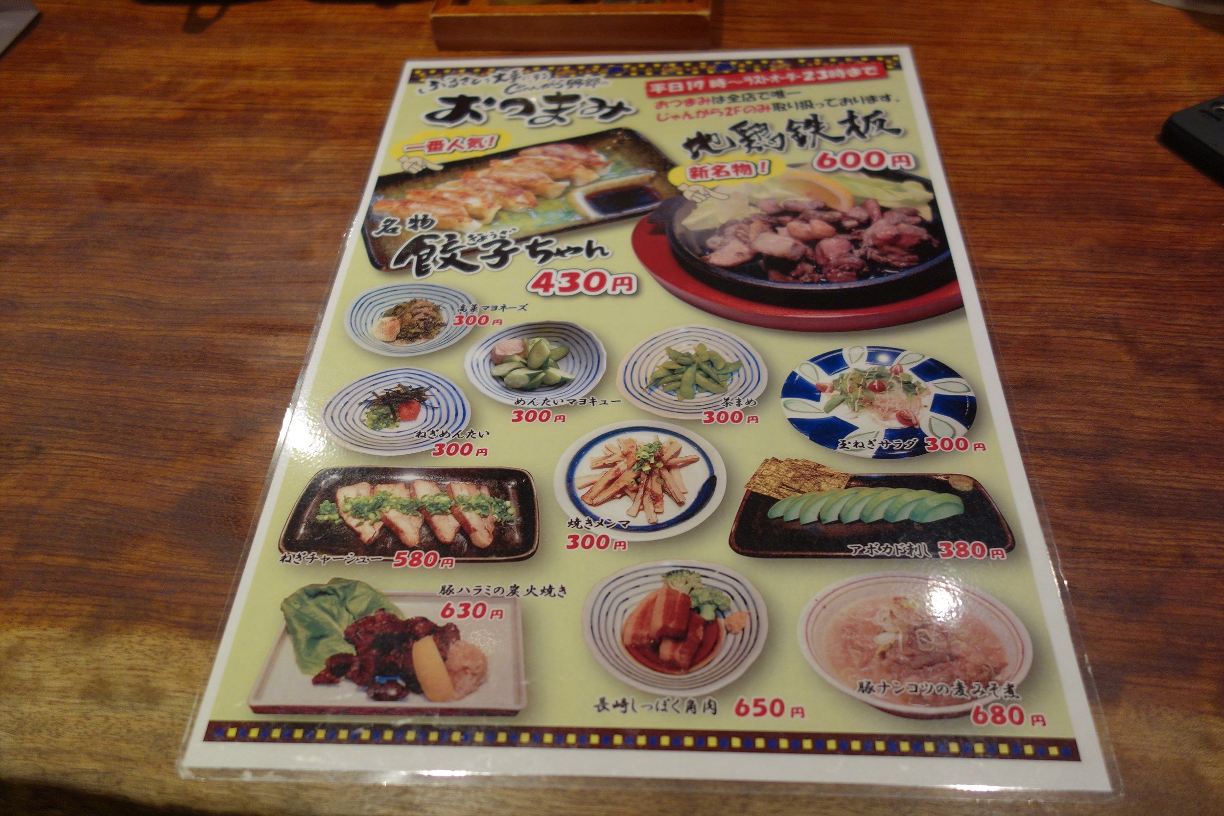 餃子や地鶏鉄板焼きなどのおつまみメニュー