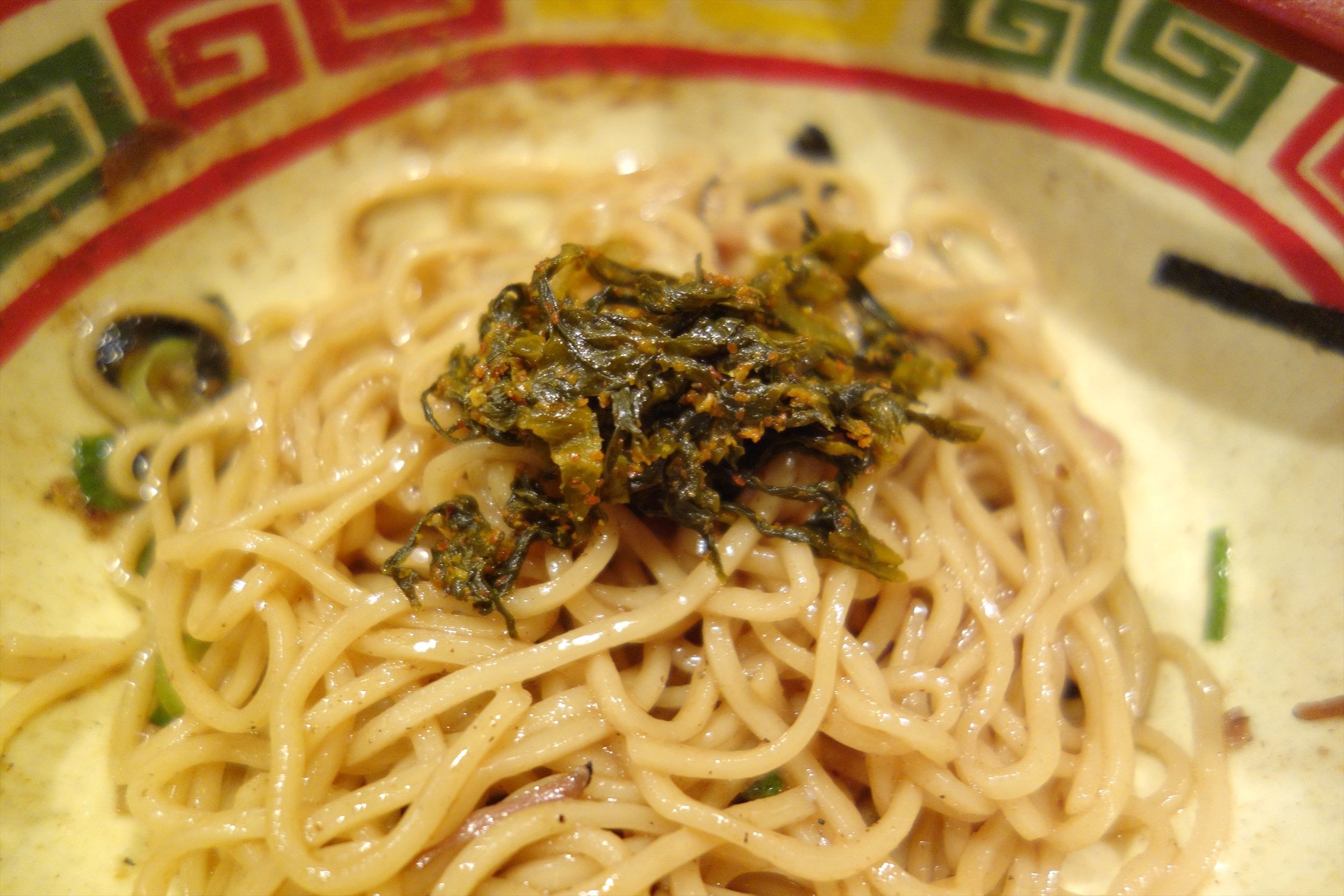 ぴりりと辛い高菜をプラスすることで刺激的な風味が増して美味しく完食!ごちそうさまでした!