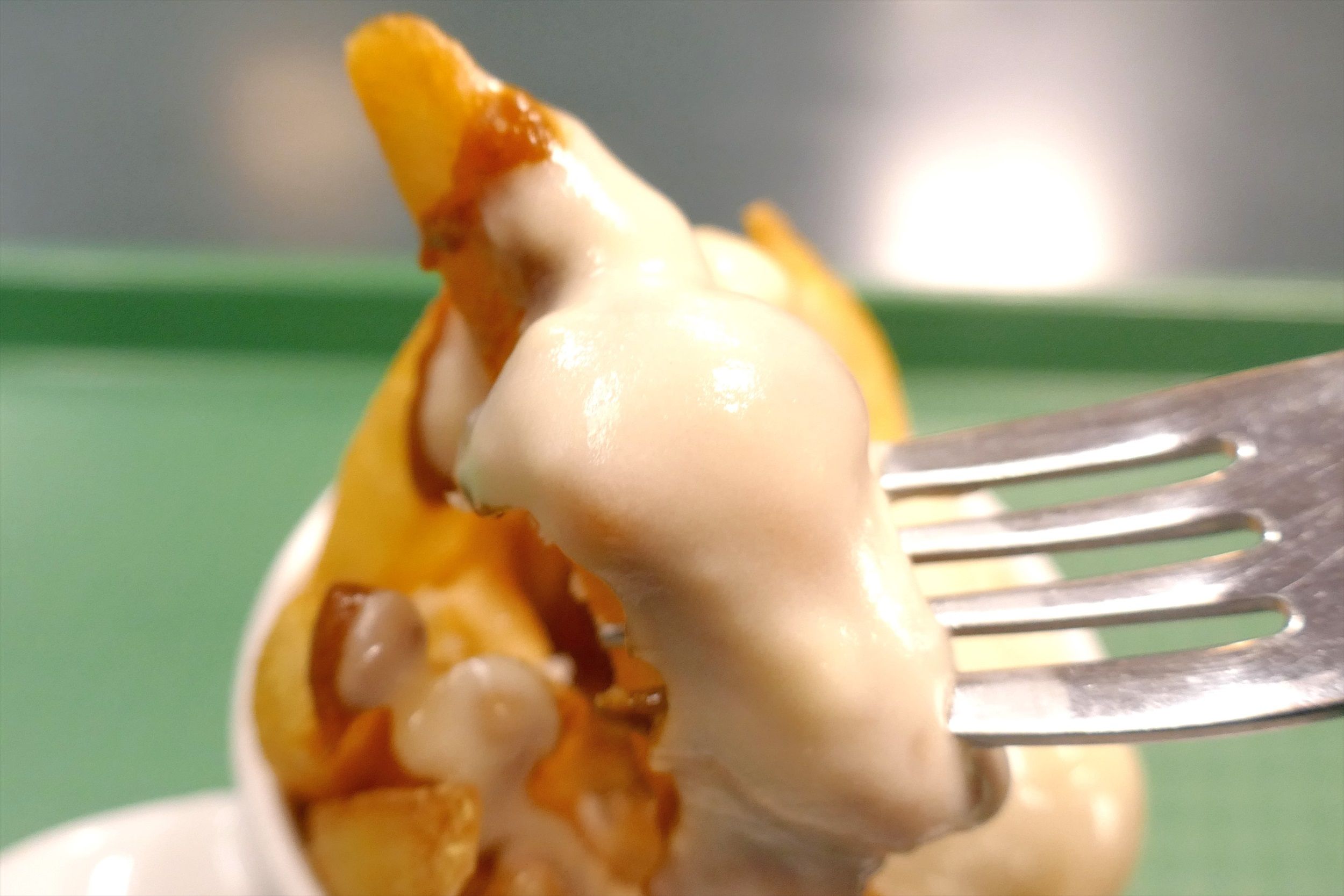 熱々カリカリポテトに、まろやかなホワイトソース、酸味と甘味が響き合うデミグラスソースが絡み合ってウマイ!