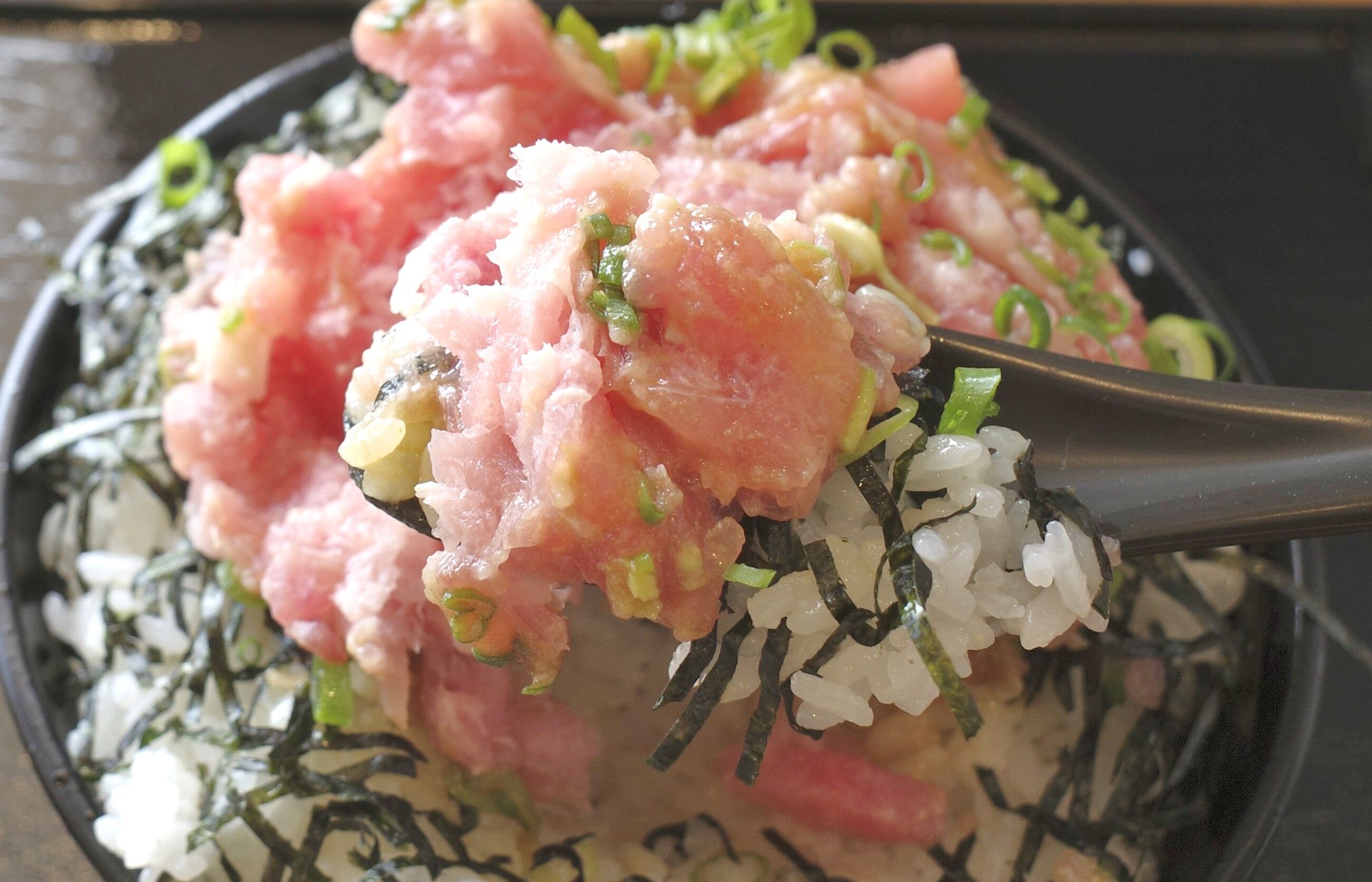 ちなみに丼にはまぐろのすき身がガッツリ盛り付けられています。