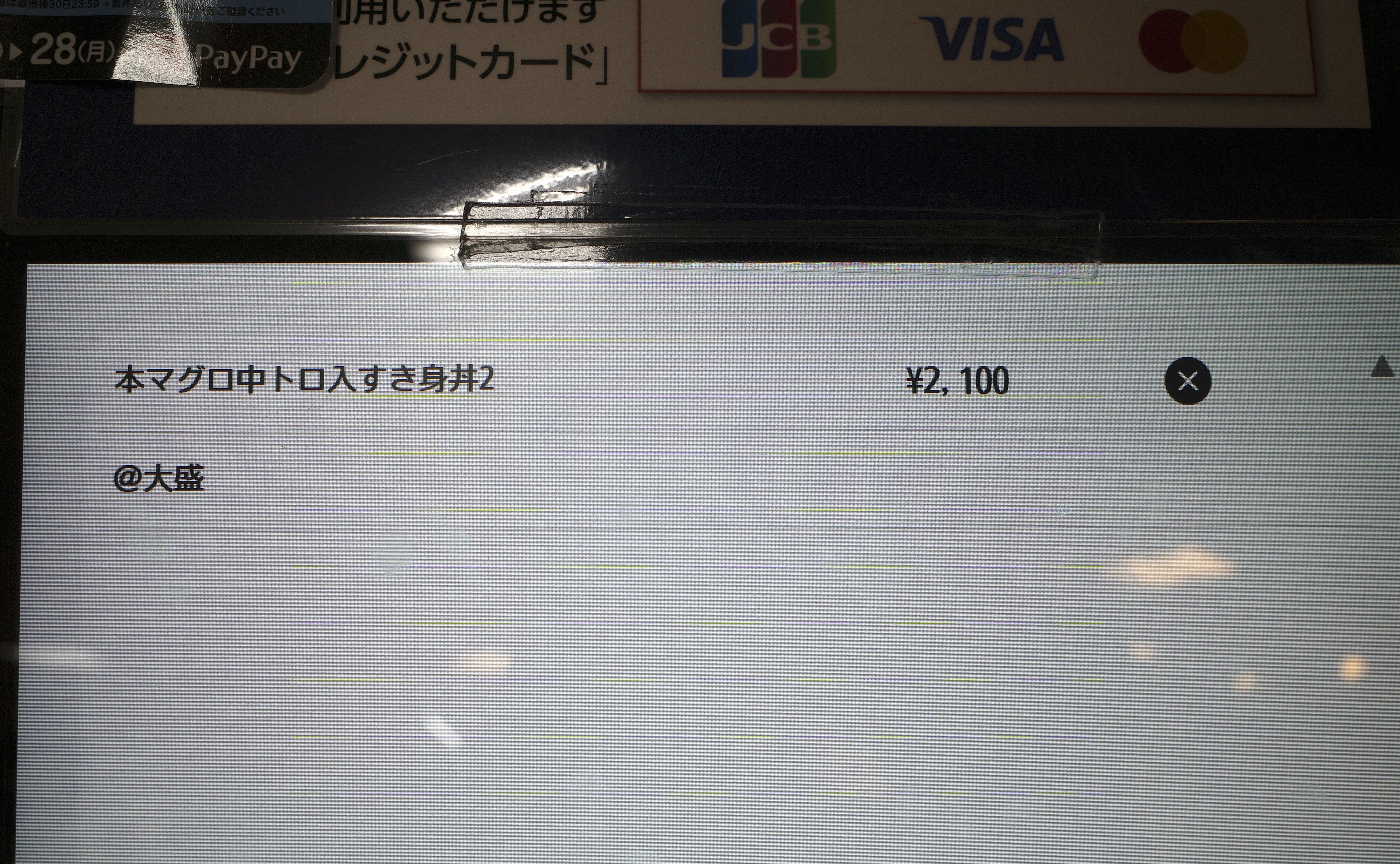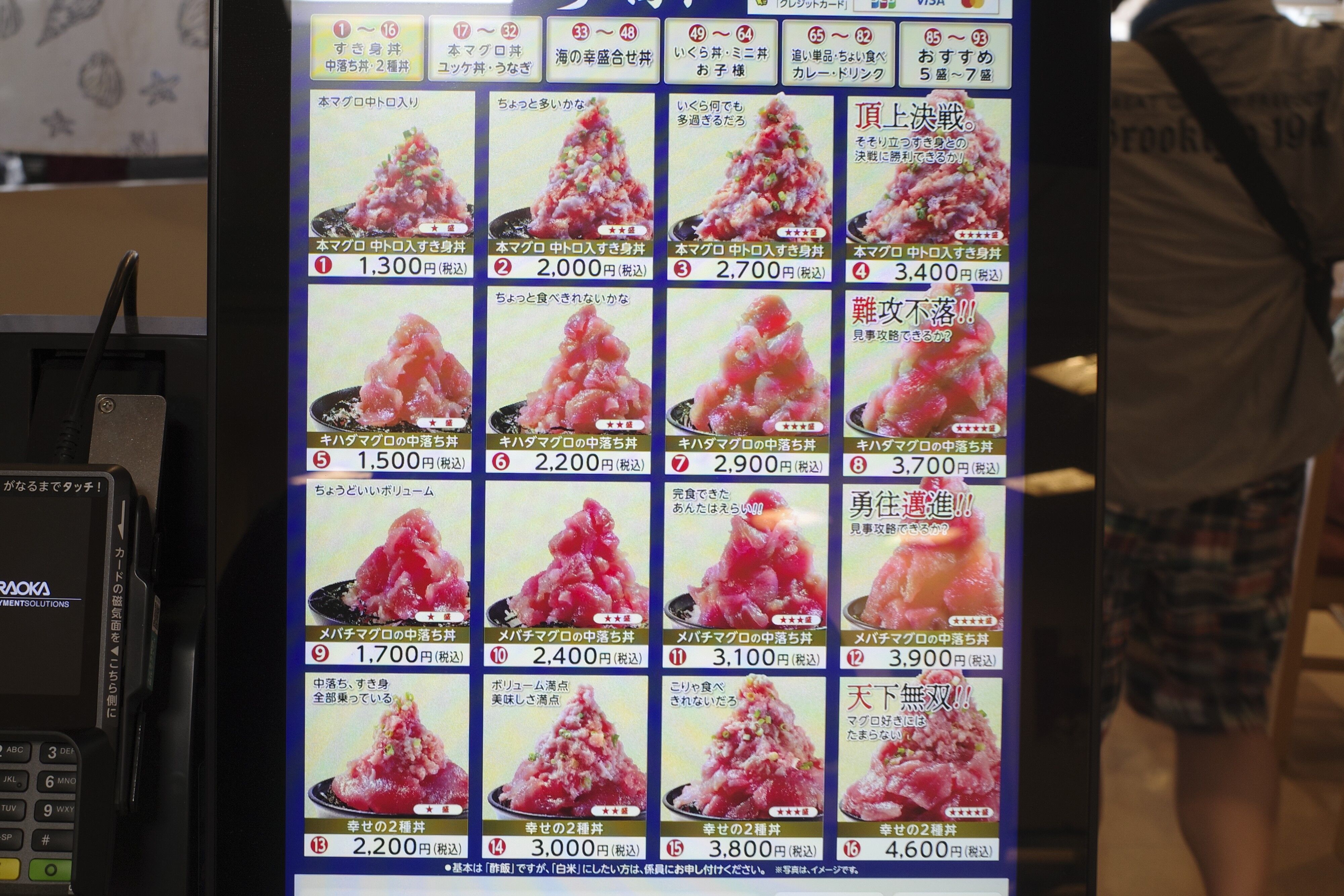 今回は券売機で「本まぐろ中とろ入りすき身丼」2100円を購入。