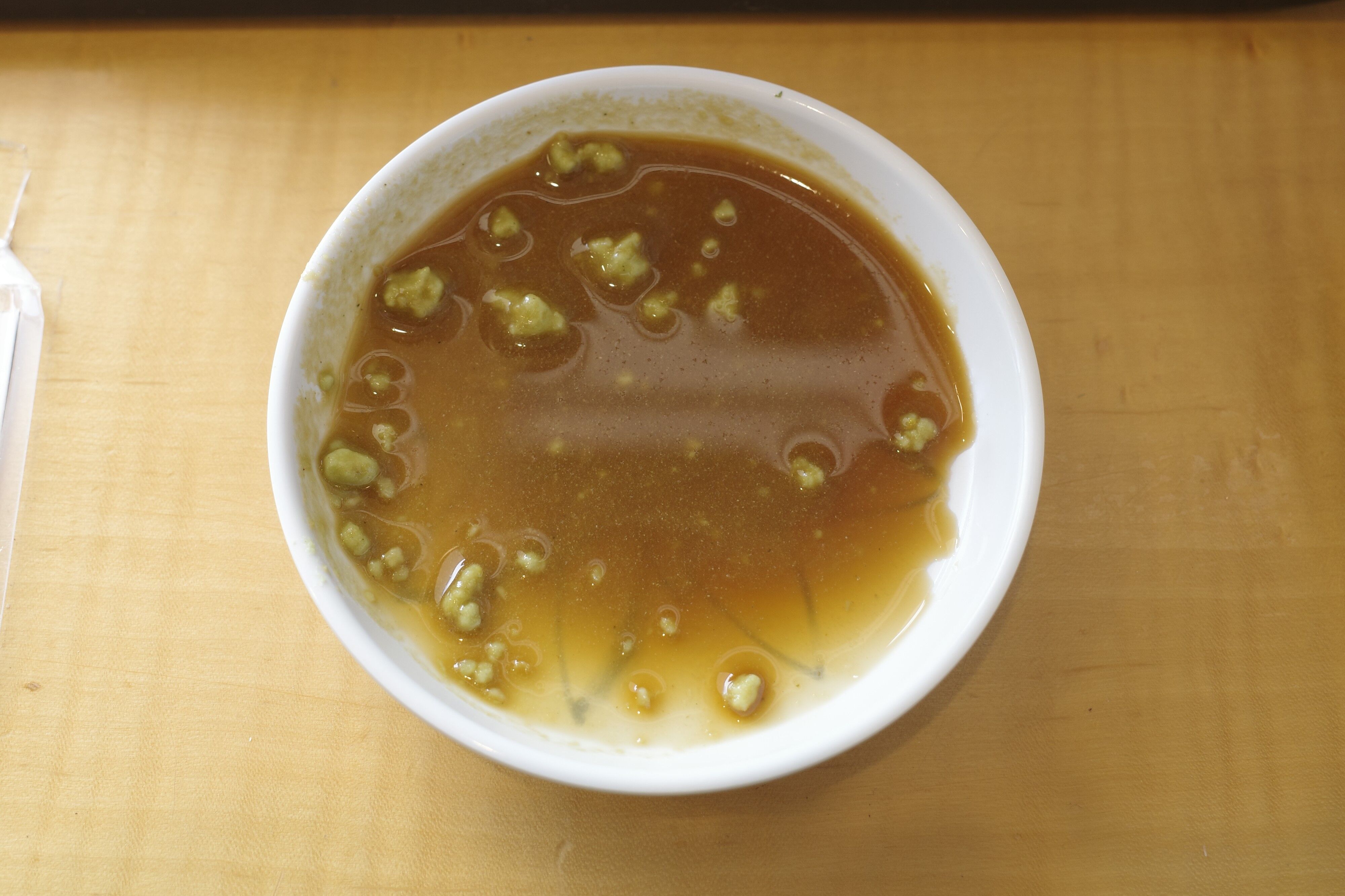その後はまんべんなくわさび醤油をまぐろの身めがけてかけていきます!