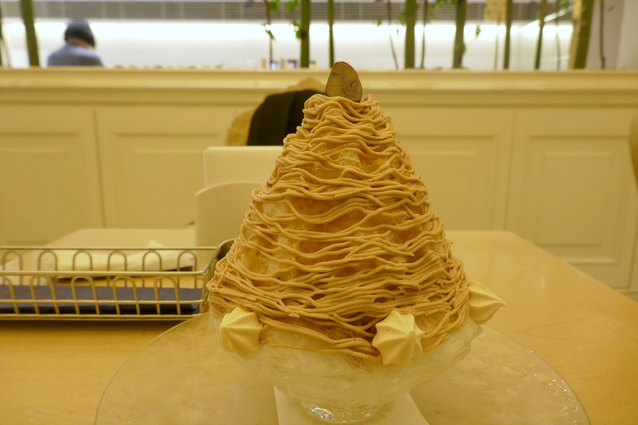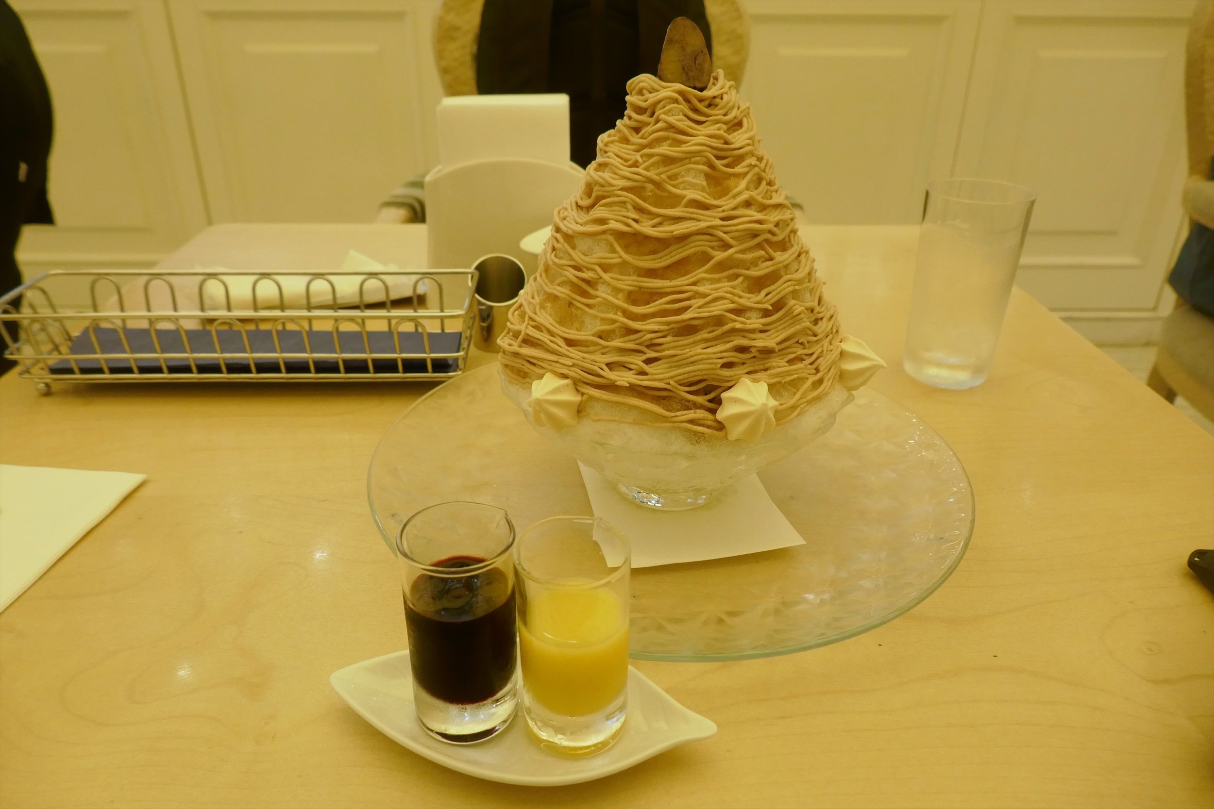 メニューは色々とありましたが、日光の天然氷を使った「雪の菓モンブランかき氷」1404円を注文しました。