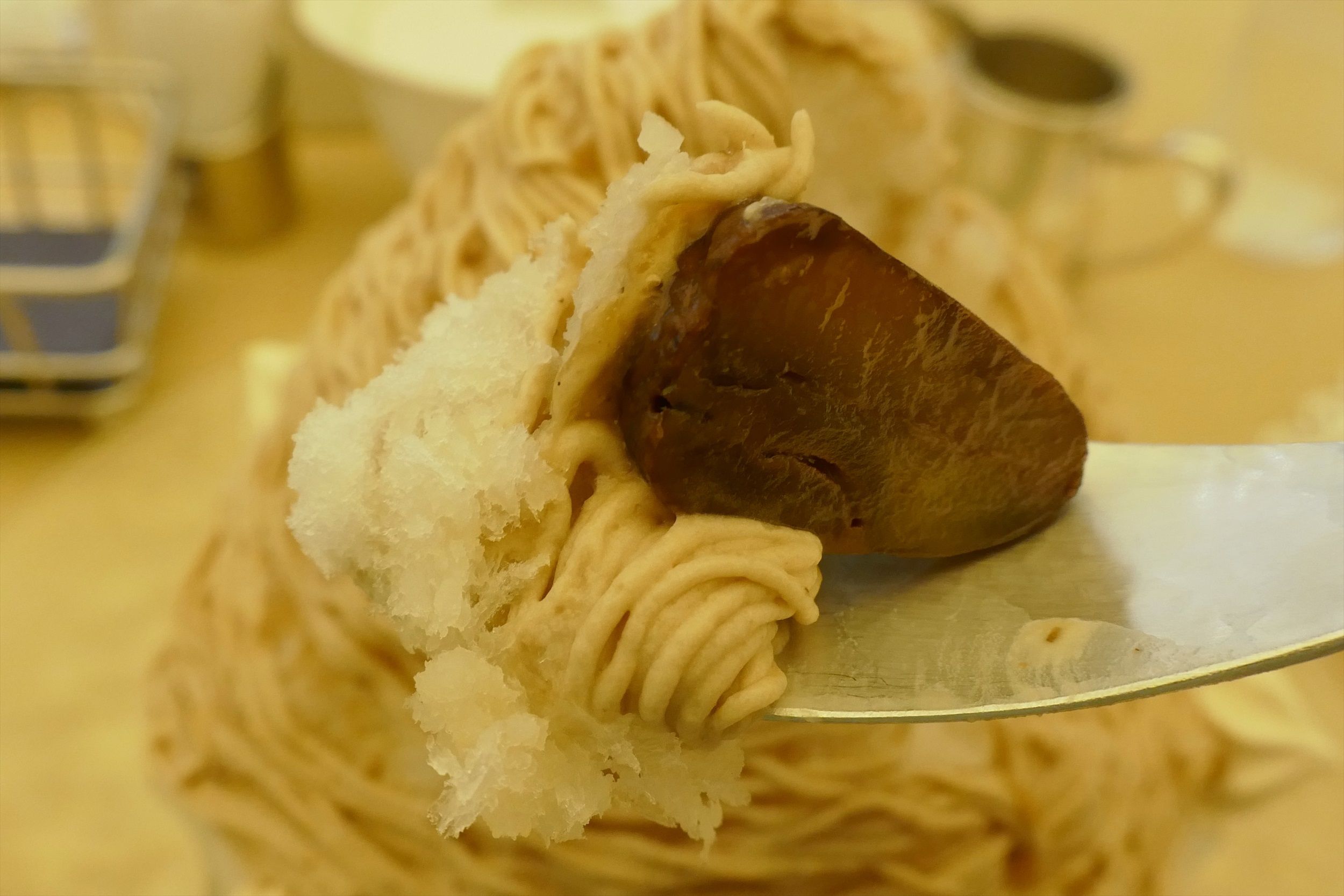 かき氷の上にはバッチリマロンクリームがたっぷりかかっています。