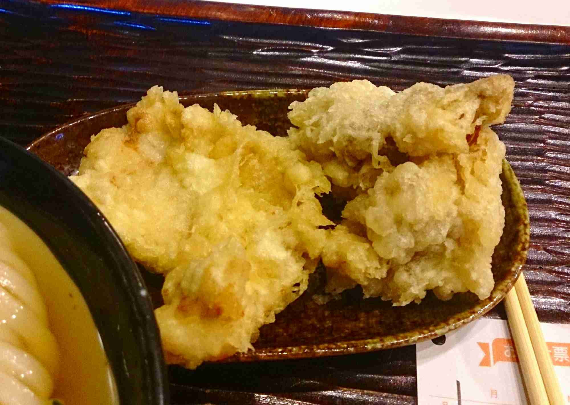 まずはかしわ天から頂いてみると、揚げたてな事もありまして熱々ふわふわで美味しく