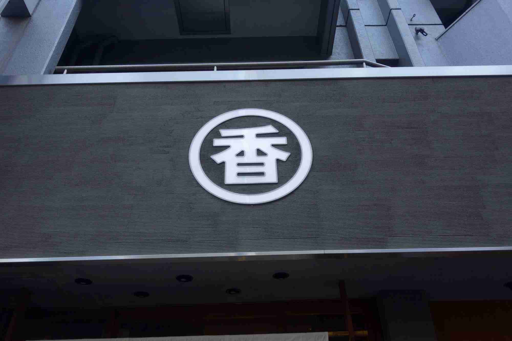 丸の中に香が書かれた丸香の正面入口前に辿り着き