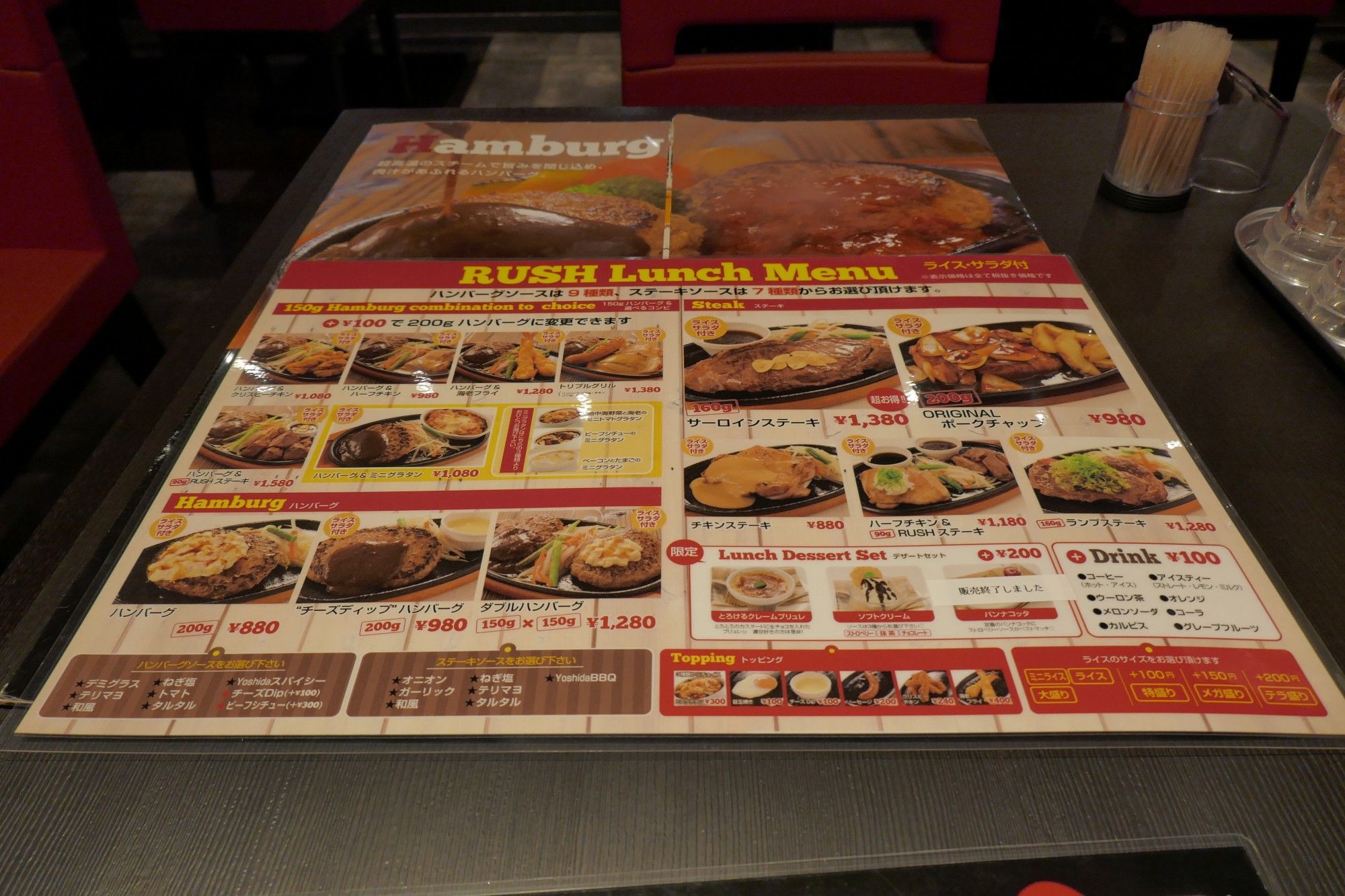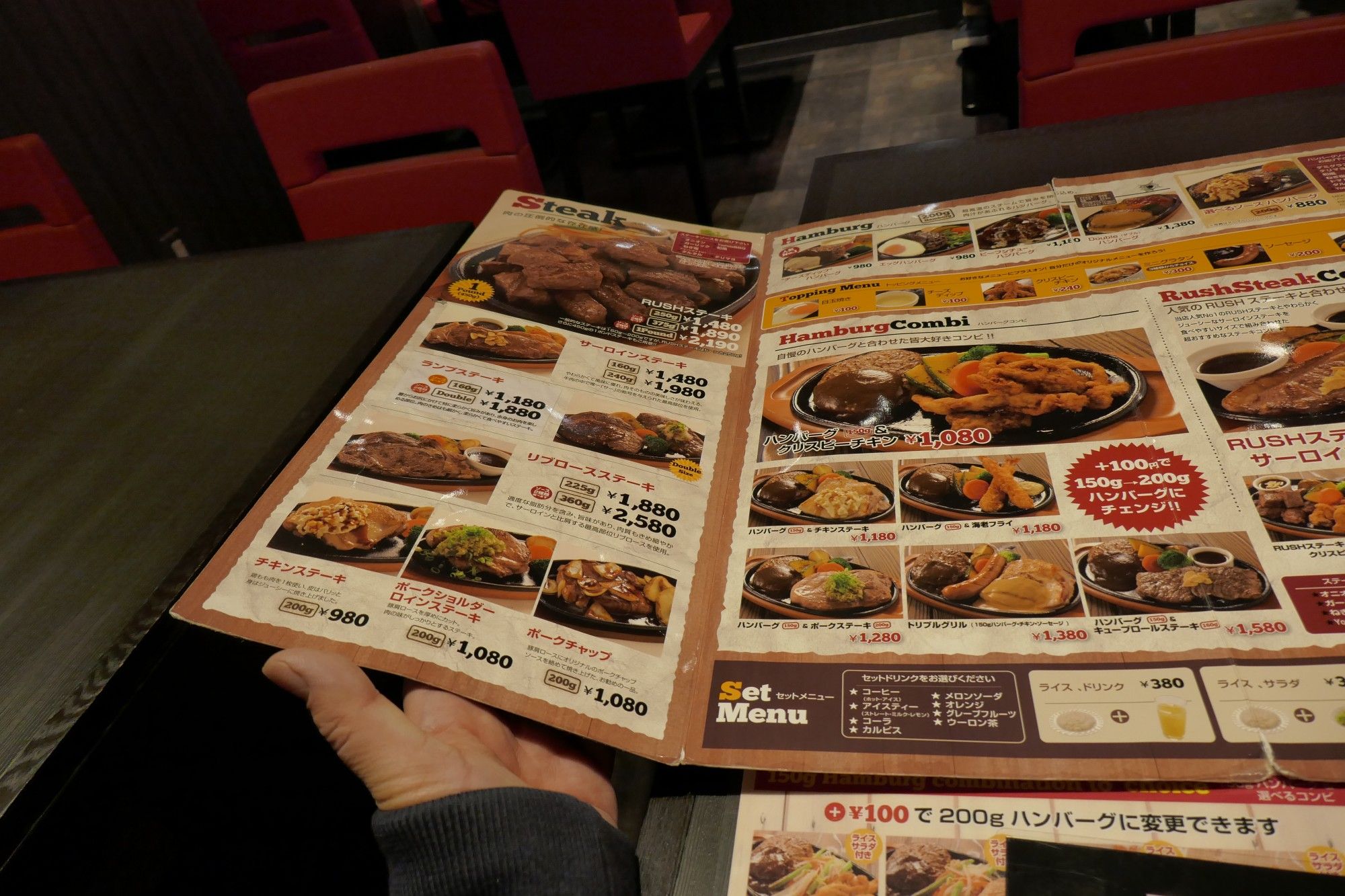 ステーキメニュー、ハンバーグメニュー、ハンバーグコンビメニュー