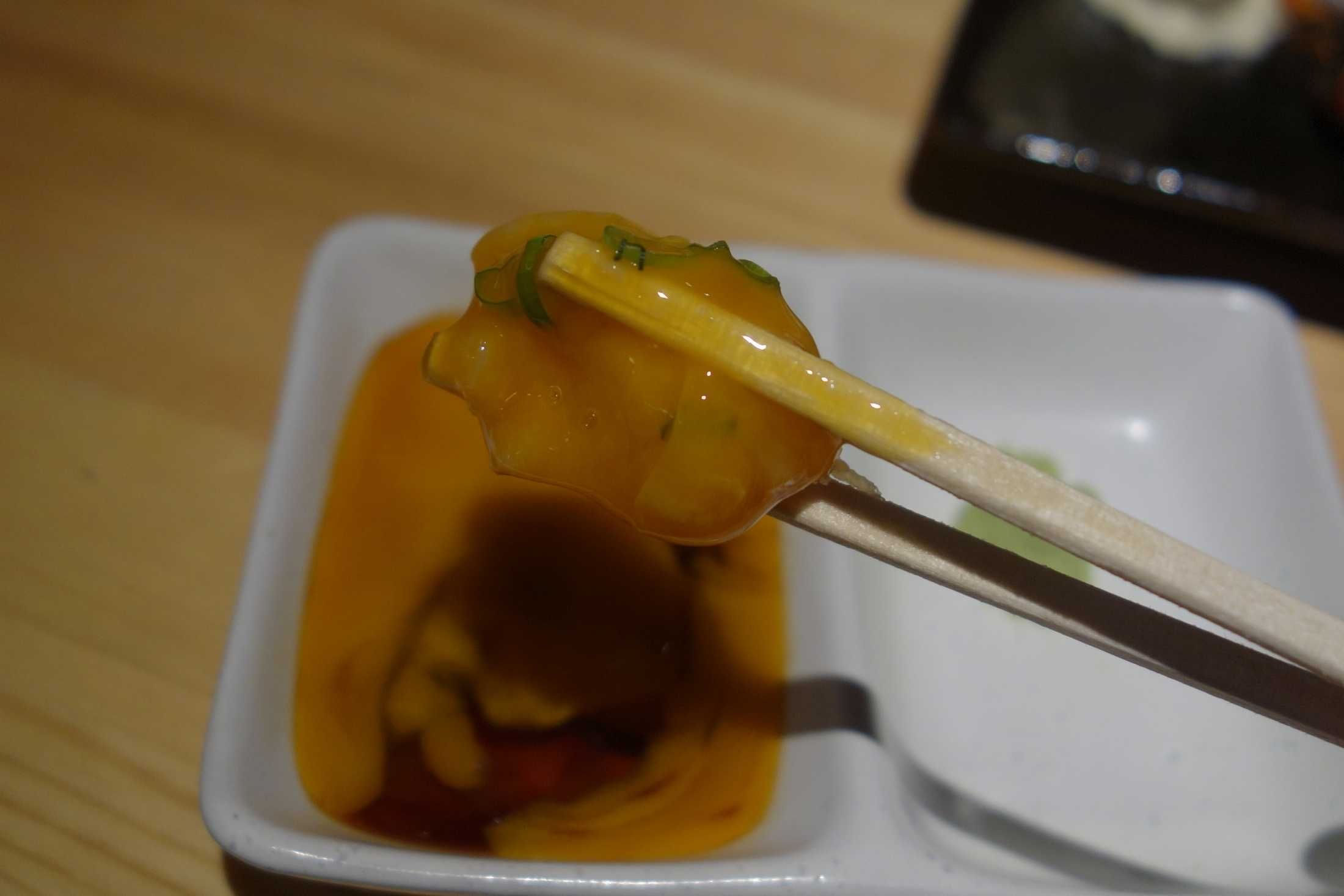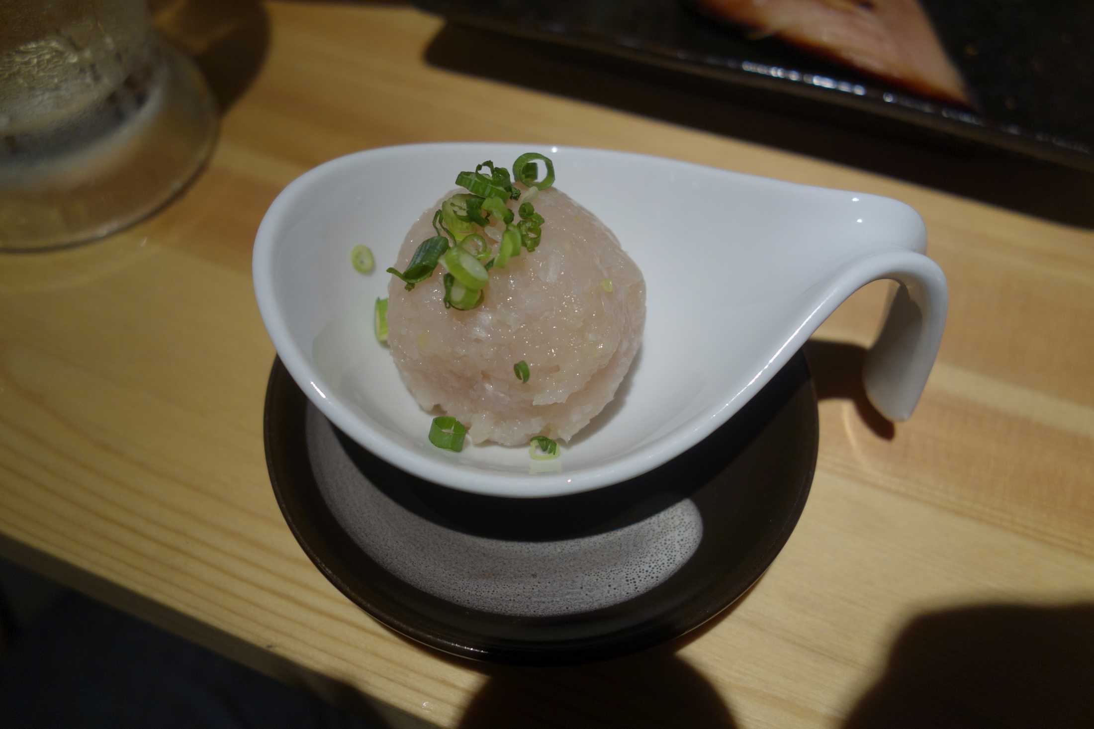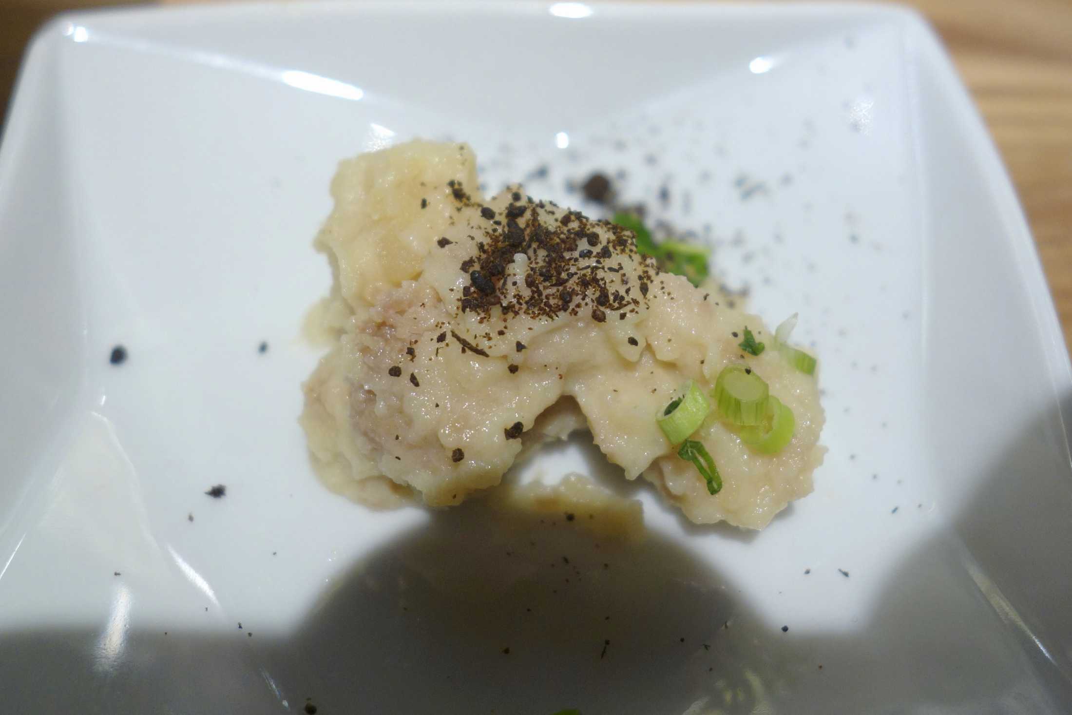 その後は名物生つくね680円を注文し、そのまま食べると肉々しいネギトロの様な味わいですが