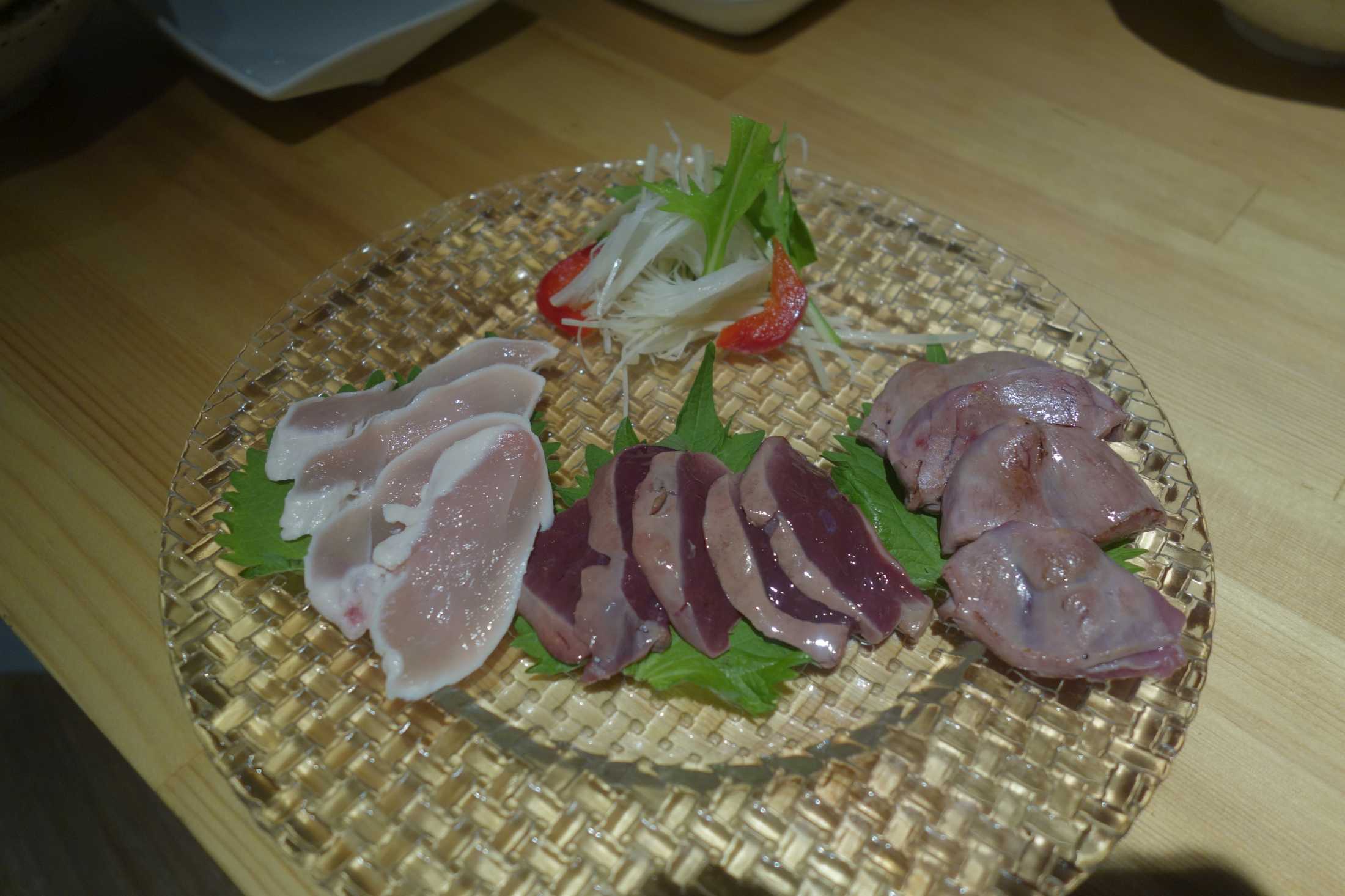 その後はラーメン店なのに取り扱っているのが珍しい気がする、鶏刺し身3点盛り780円を注文し