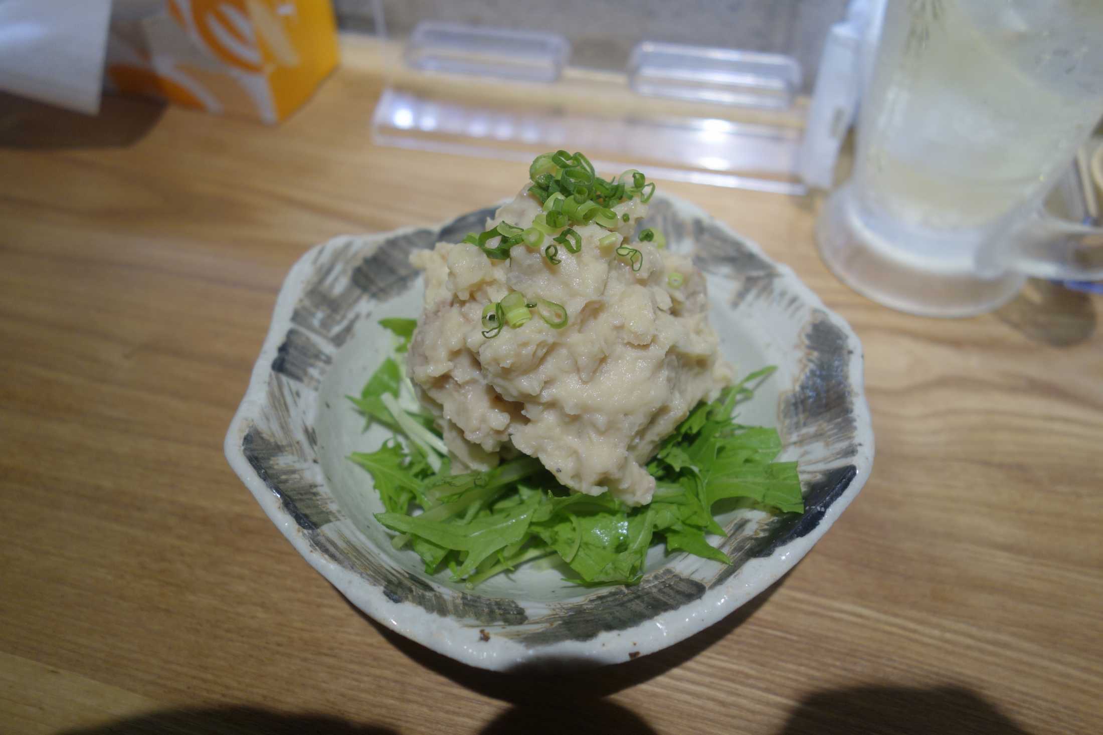 鶏そぼろのポテサラは、甘い味付けで鶏そぼろの存在感をしっかり感じられる一品で