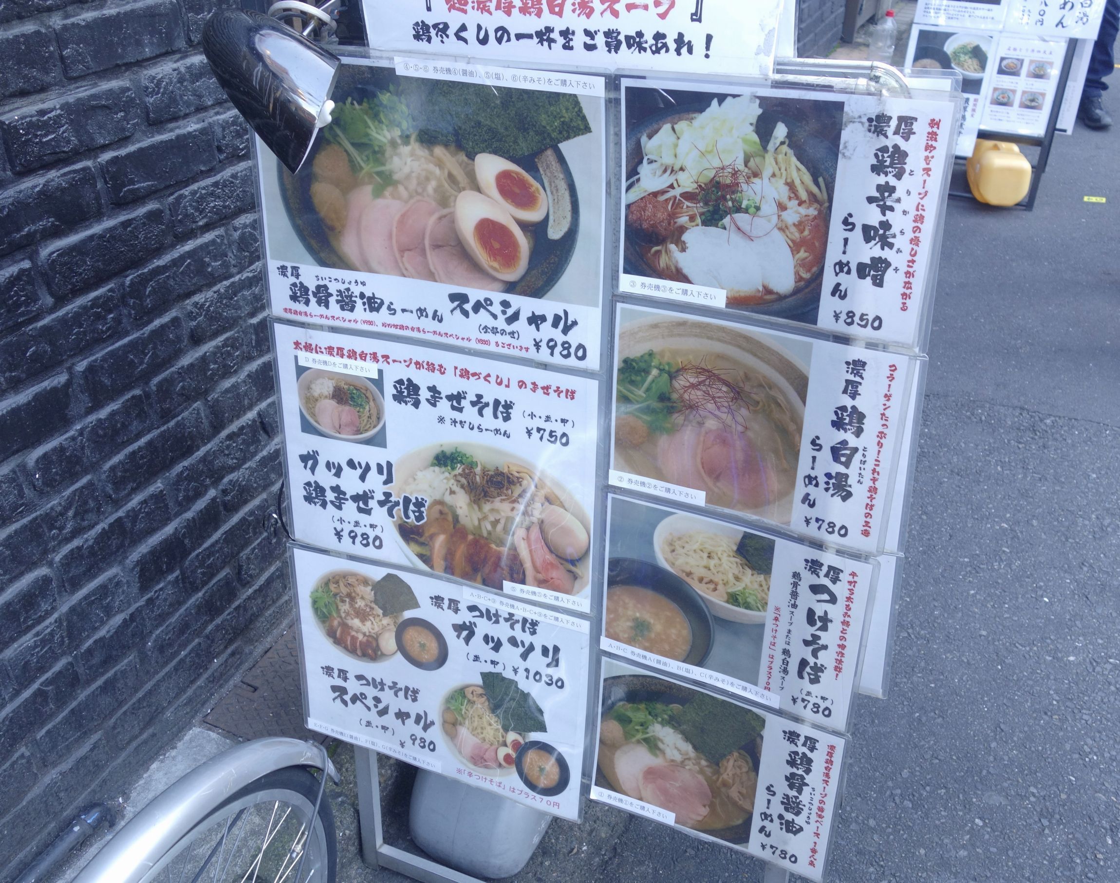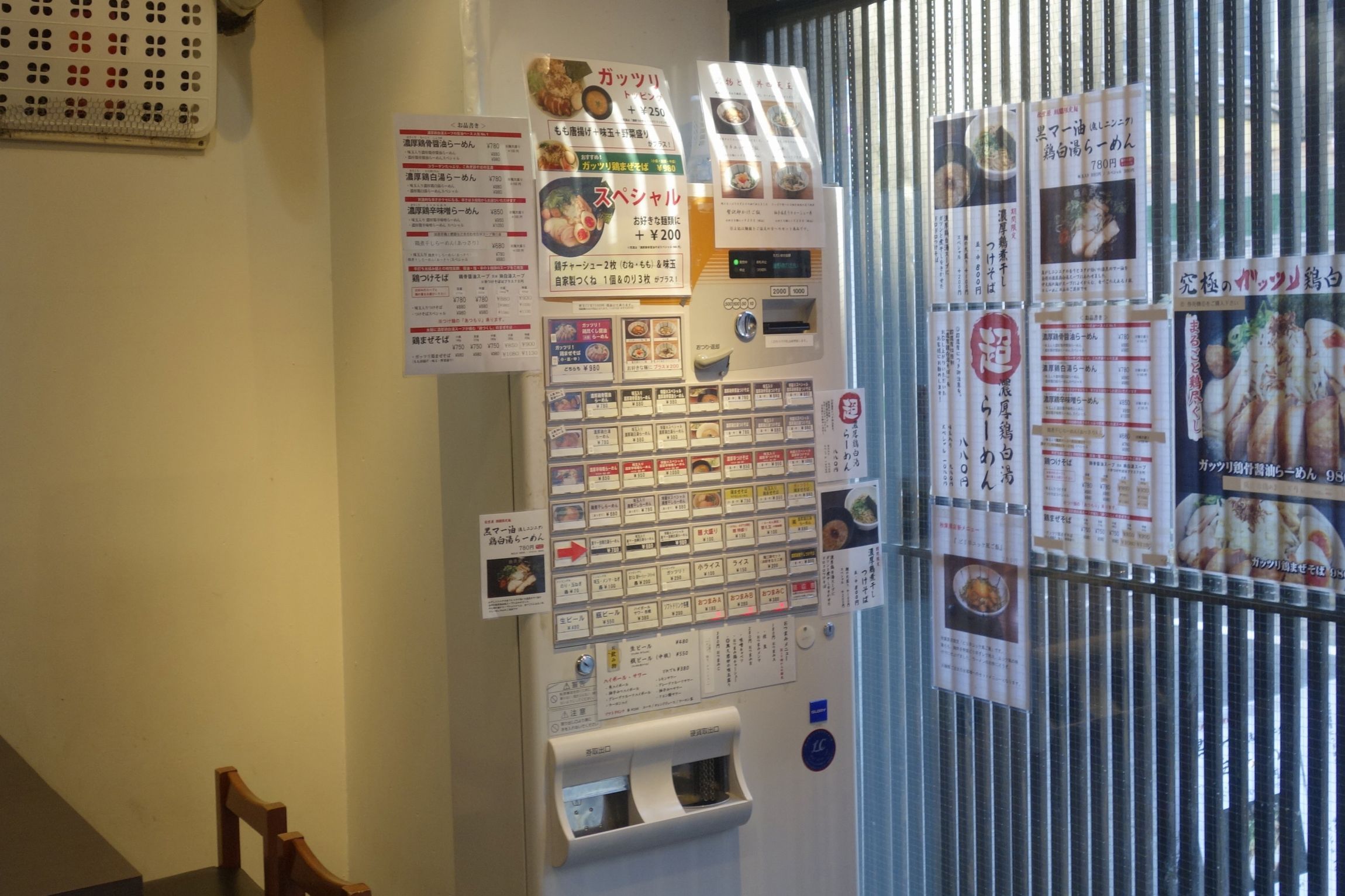 食券売機を見て色々と迷いましたが、今回はガッツリ鶏つくし醤油ラーメン並盛り980円を注文しました。