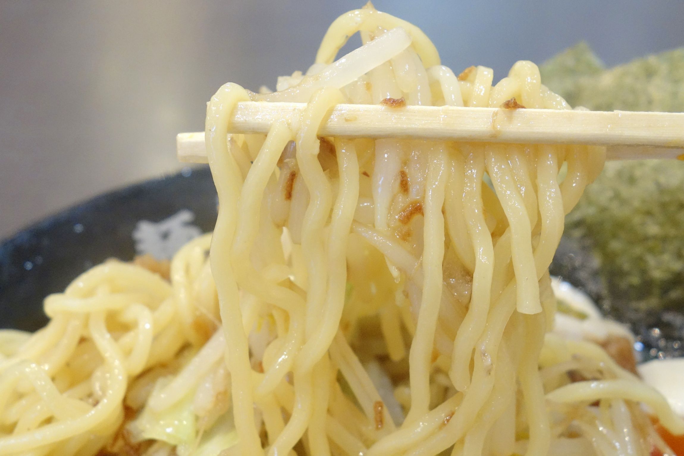 肝心の麺は少々細めながらもコシが強く食べごたえ満点! 粘性が強く円やかな鶏白湯醤油スープともよく合います。
