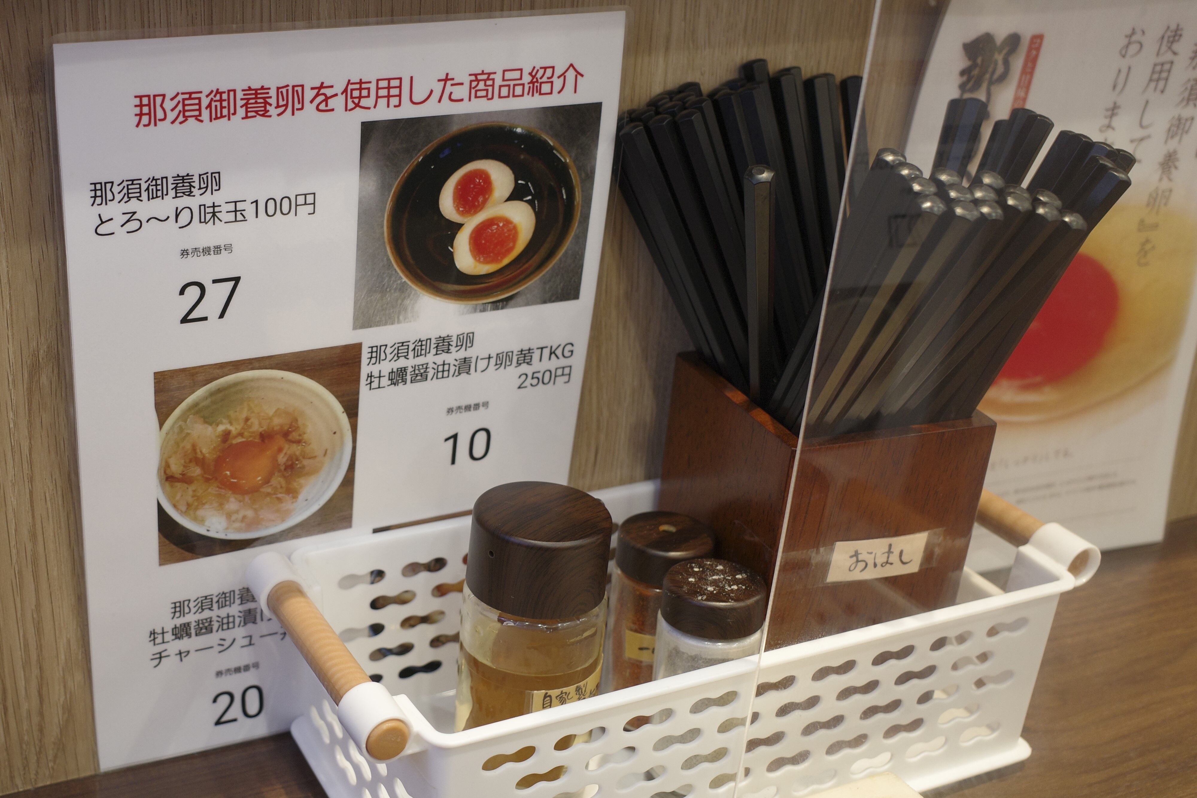 しばし、飛沫対策用のアクリル板が設置された席でトッピングメニューを見ながらラーメンが出来上がるのを待つことにします。