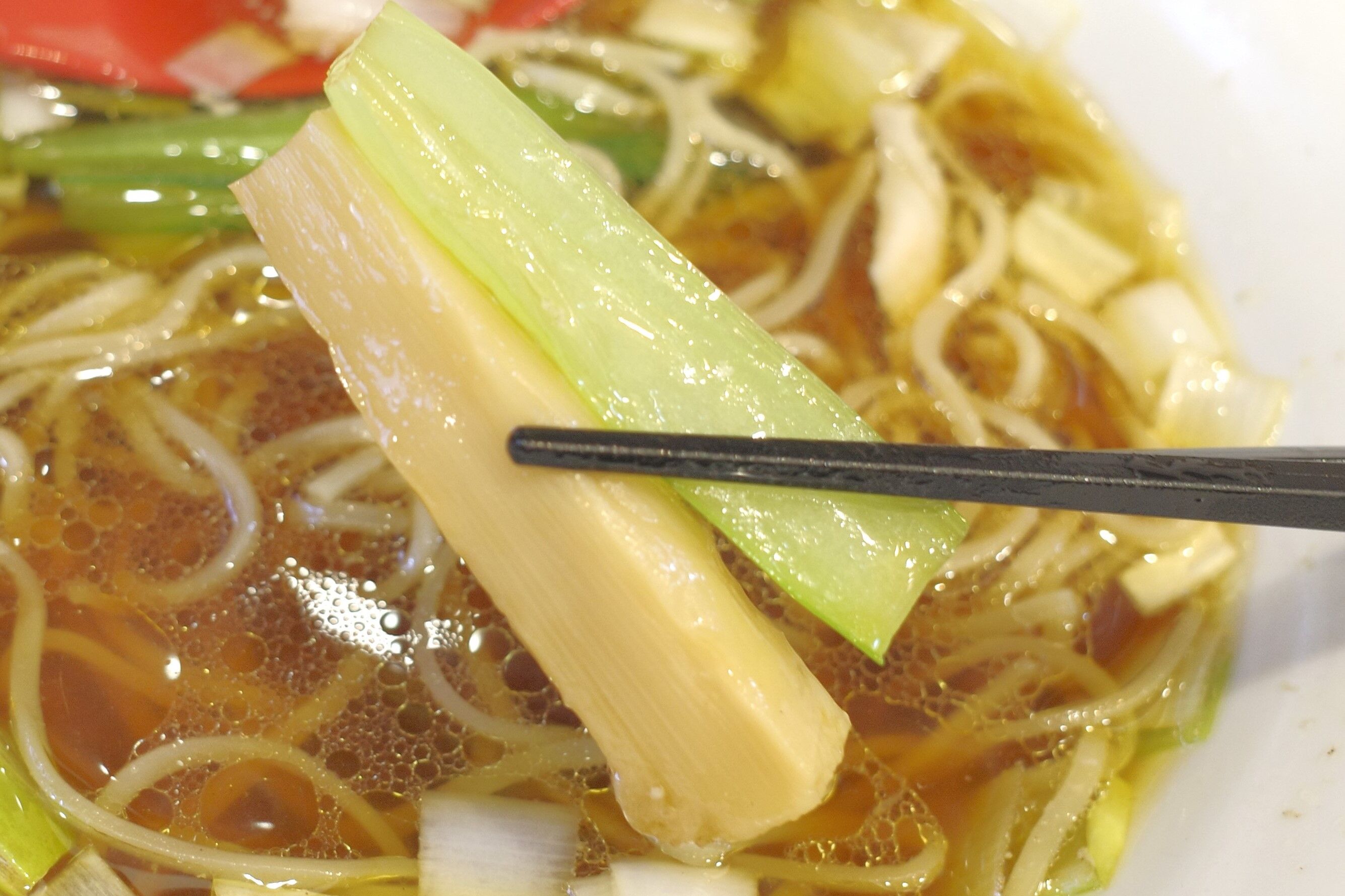 さらにシャキシャキ食感の青梗菜、太く食感も軽やかなメンマをぺろり!
