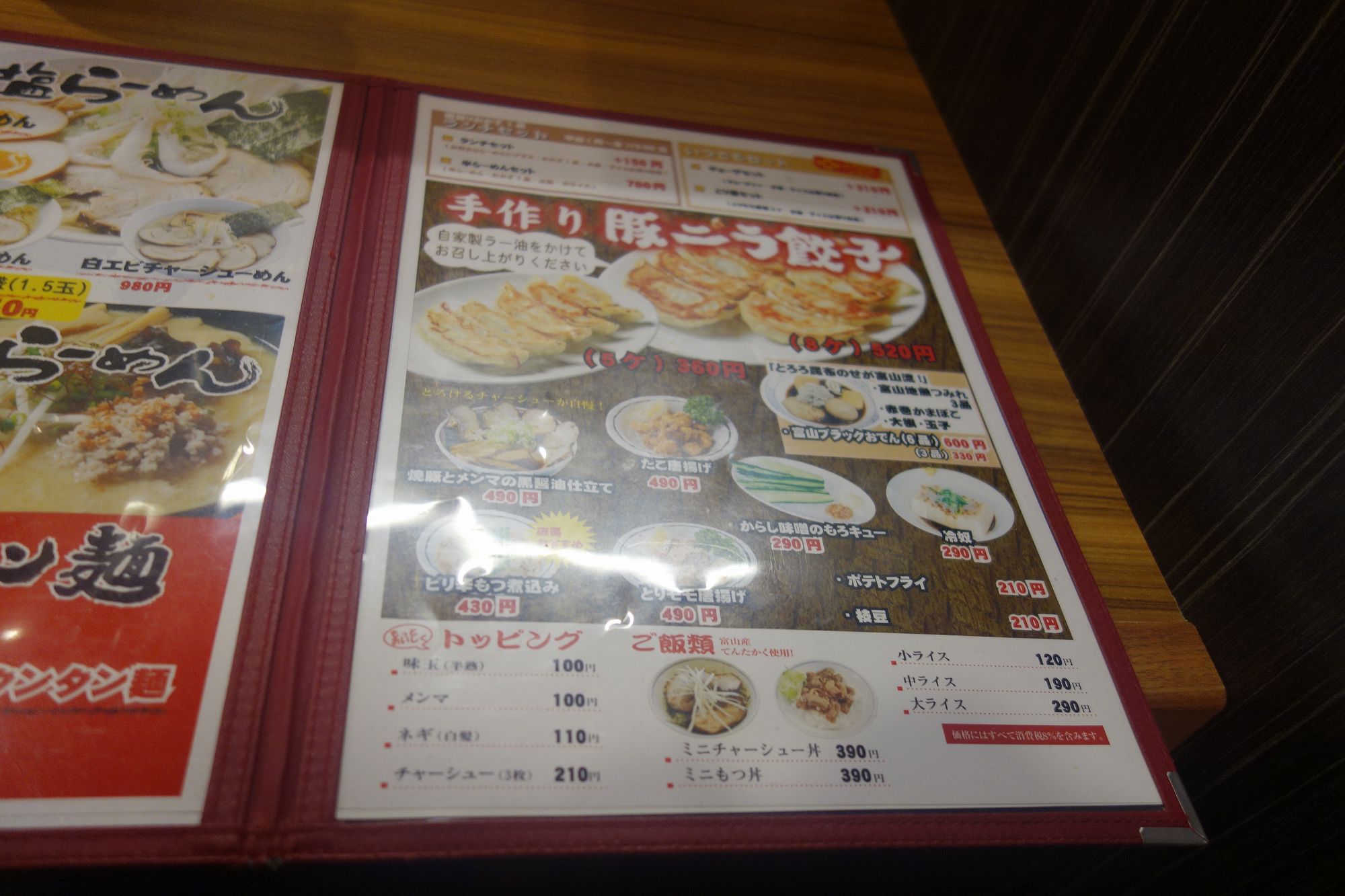 ラーメンと餃子で1230円と少々高めではありますが、ライトな富山ブラックラーメンを楽しみたい方にオススメなお店です。