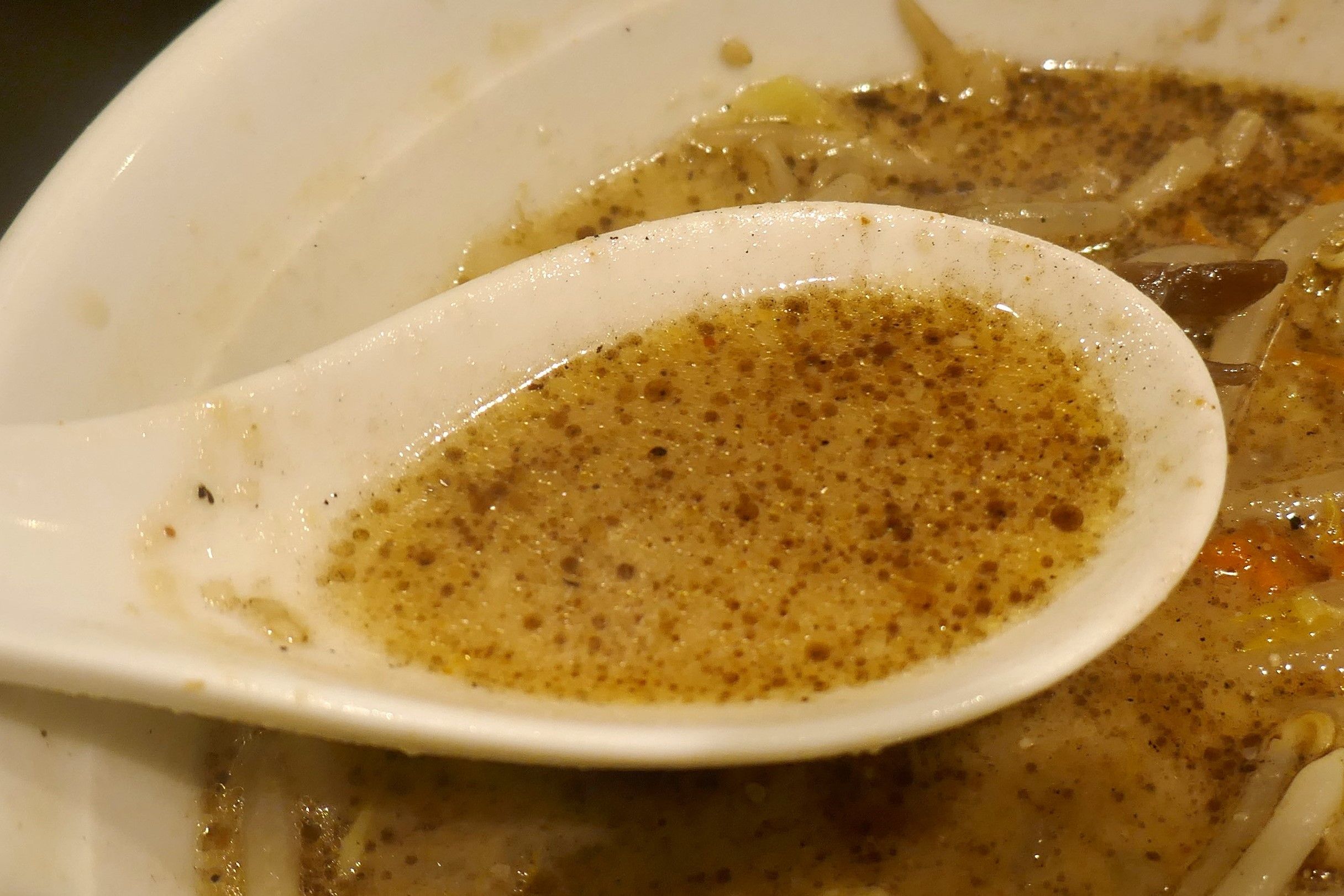 スープは味噌の風味のあとに淡麗なる牛や野菜の風味が効いて優しいウマさににっこり!加えて塩気もけっこうマイルド!