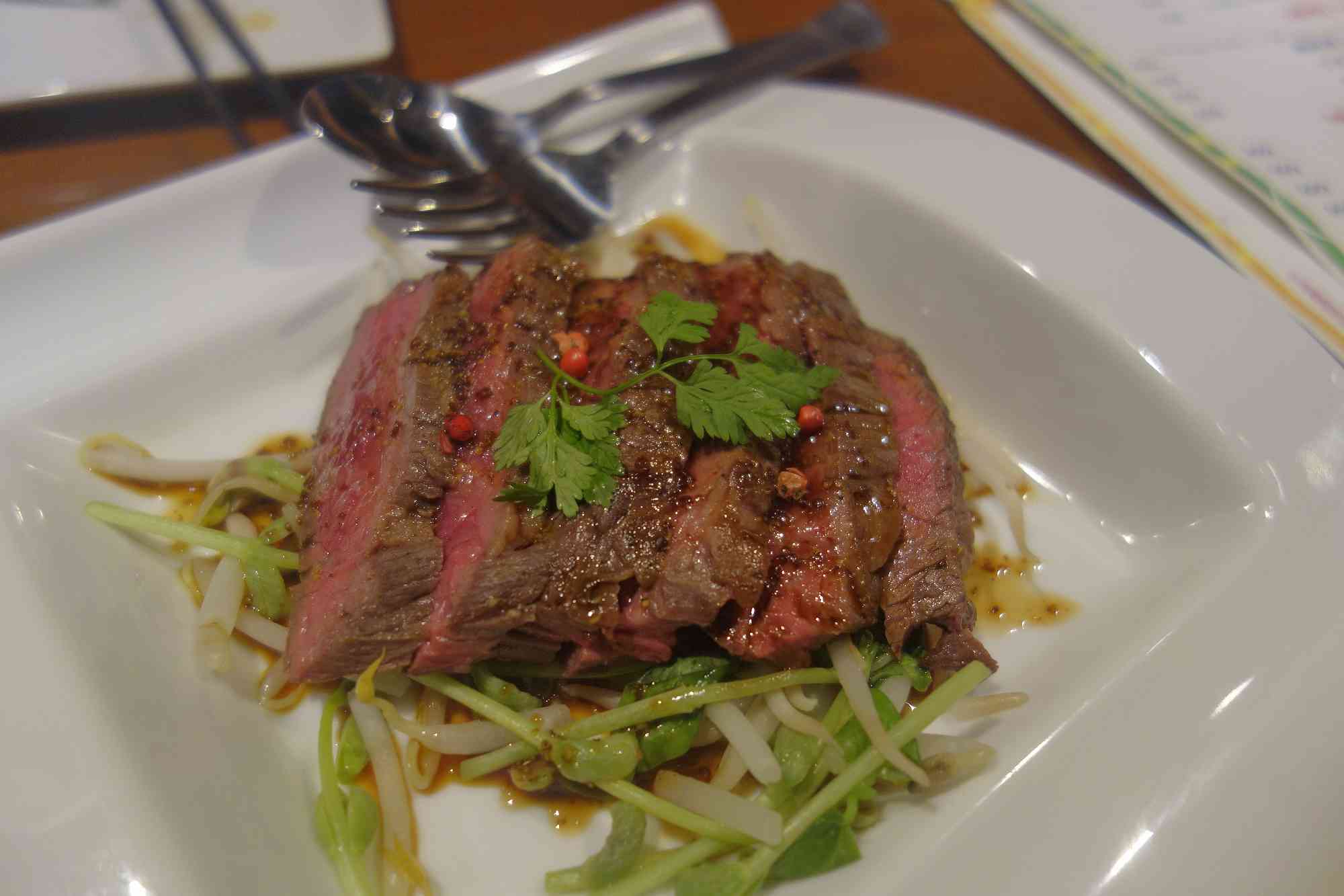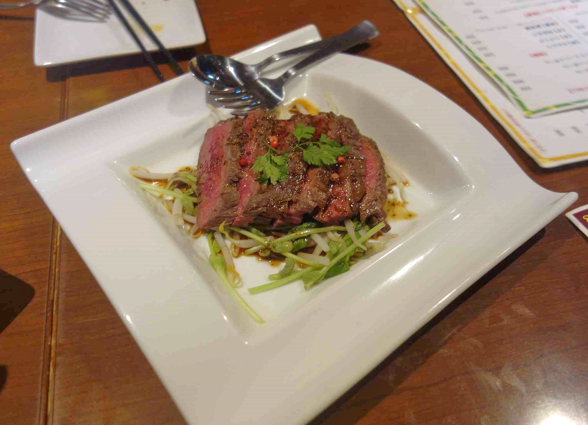 もやし料理しか出てこないかとおもいきや、熟成肉等の流行りどころの食材を使い