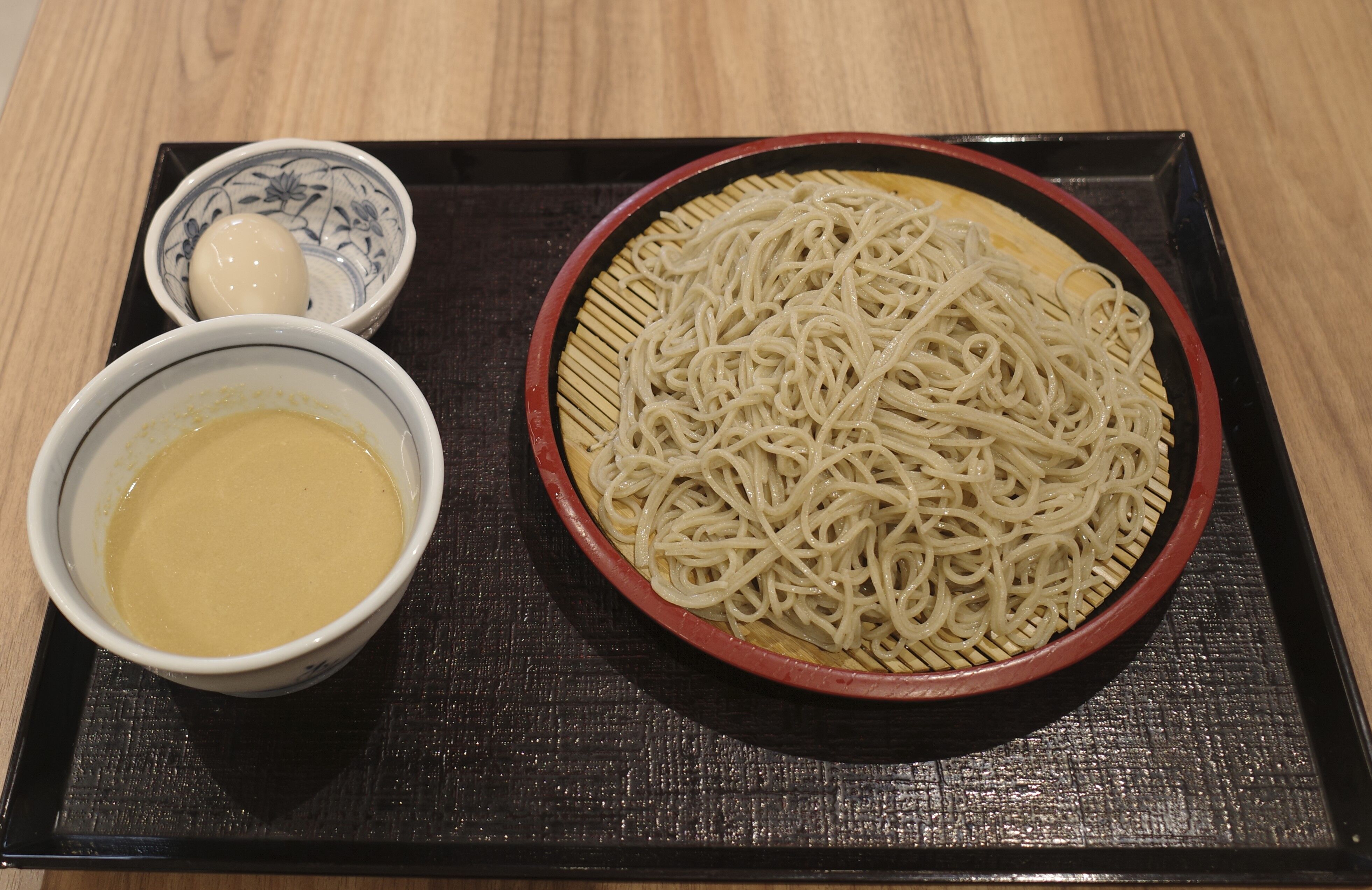 今回は「もりそば(並)」550円、タレをゴマダレに変更+80、味玉+120円で注文。