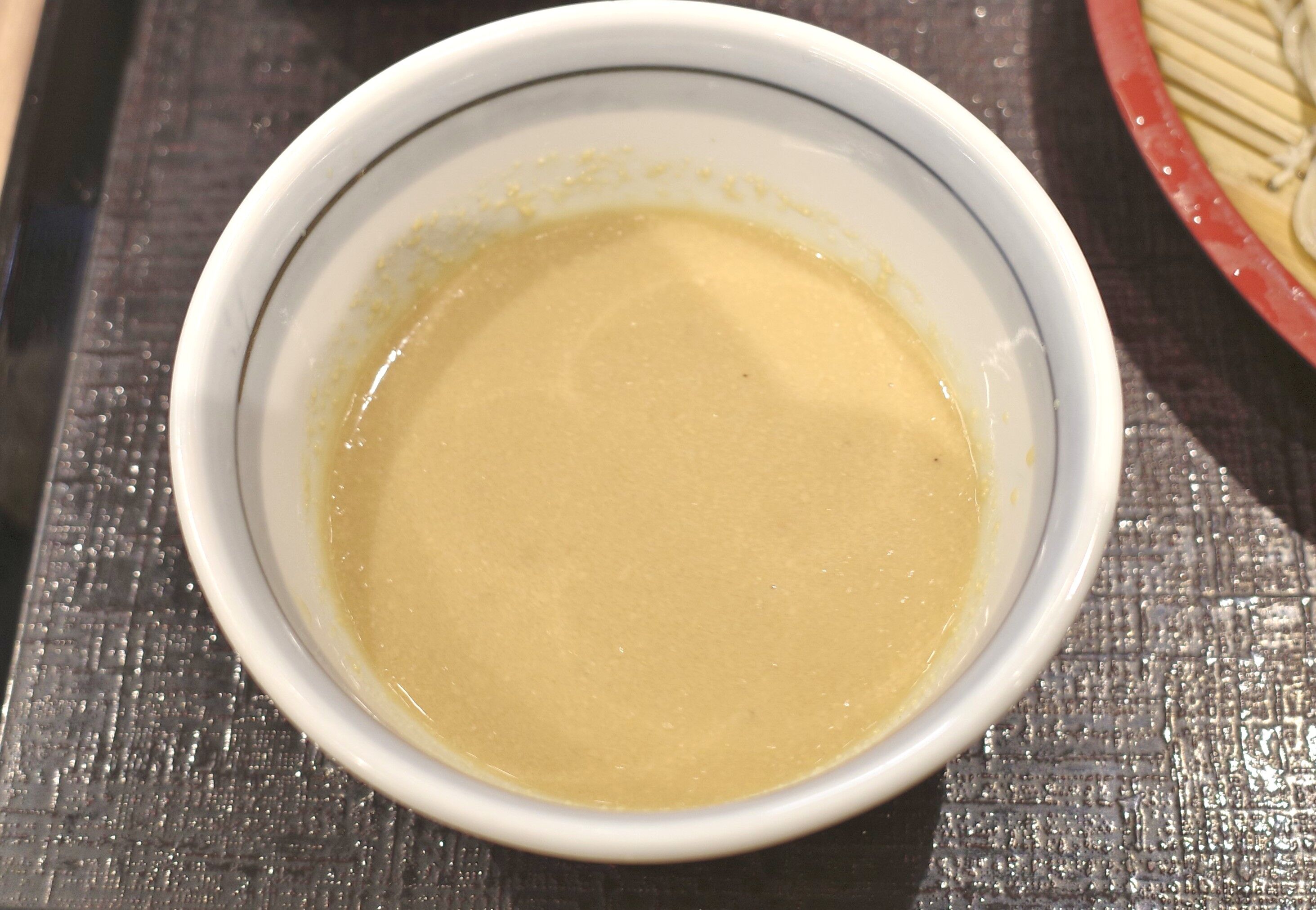 速やかにゴマダレにそばをディップして口に運ぶと、そば固有のアロマを活かしつつも、ゴマダレの味補正がかかってメチャウマ!