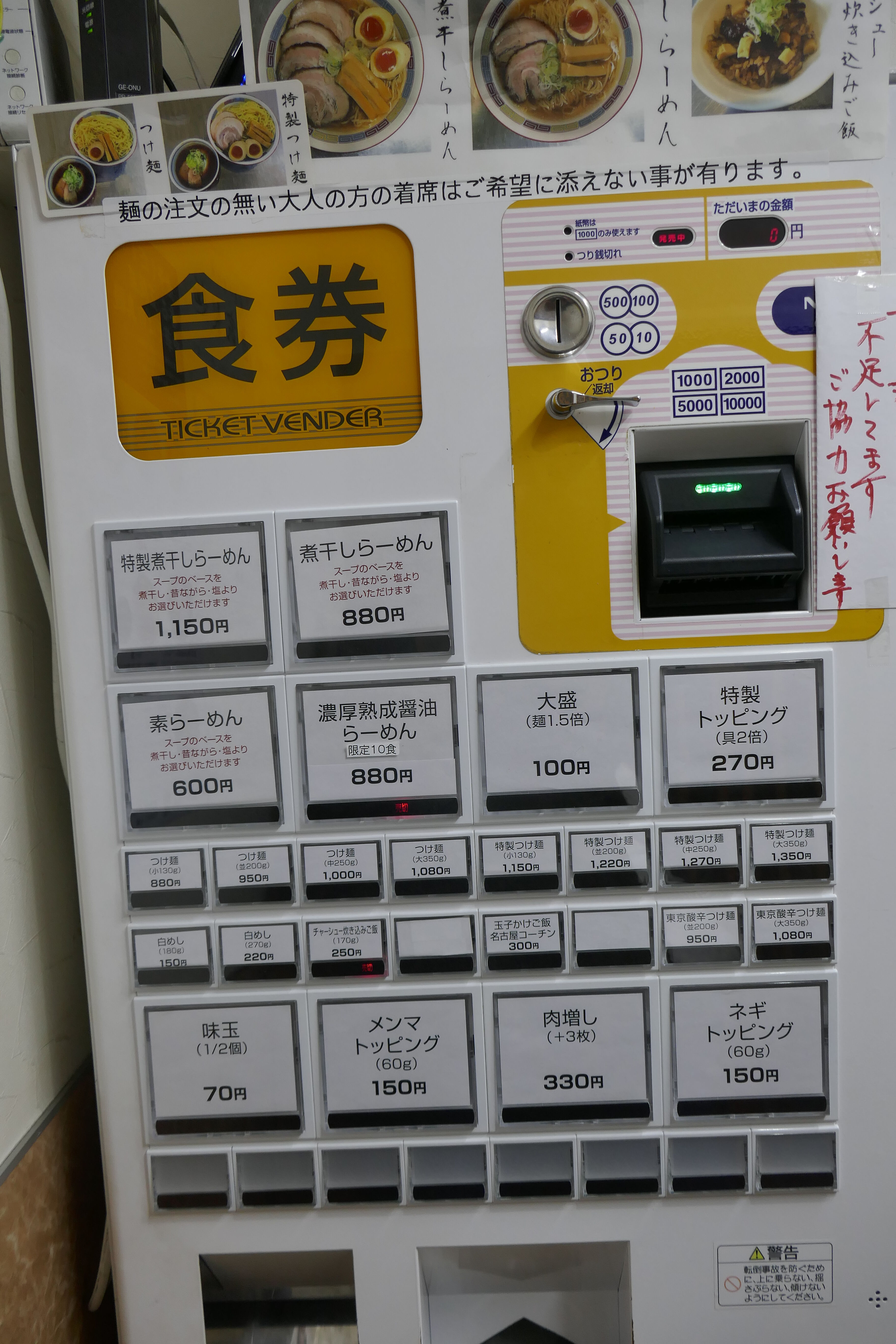 券売機前で色々と見ているとメニューがいっぱい!