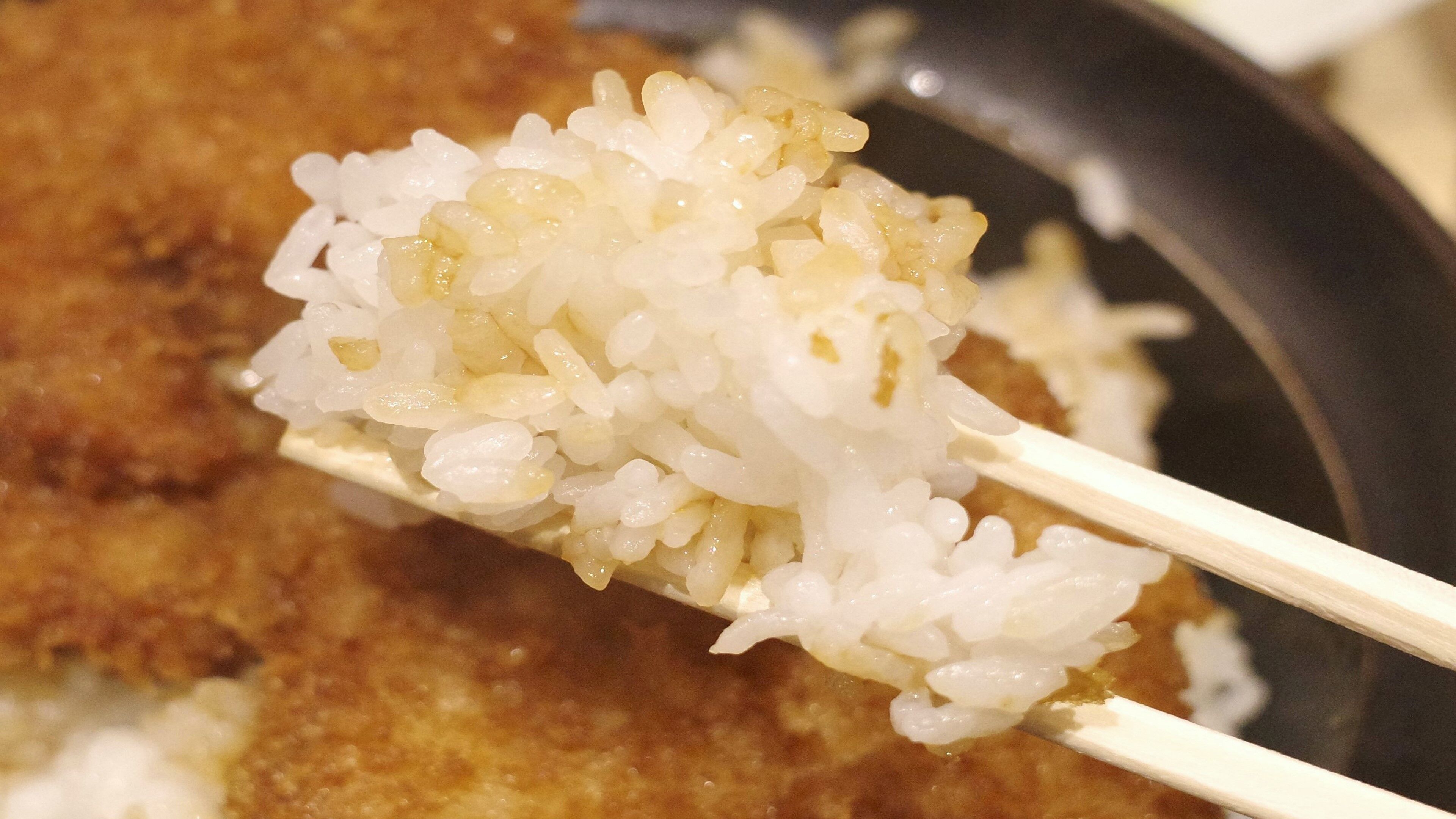 ハリのある炊き加減のご飯には、タレカツ同様にタレが浸透しておかずいらずなウマさに変身!