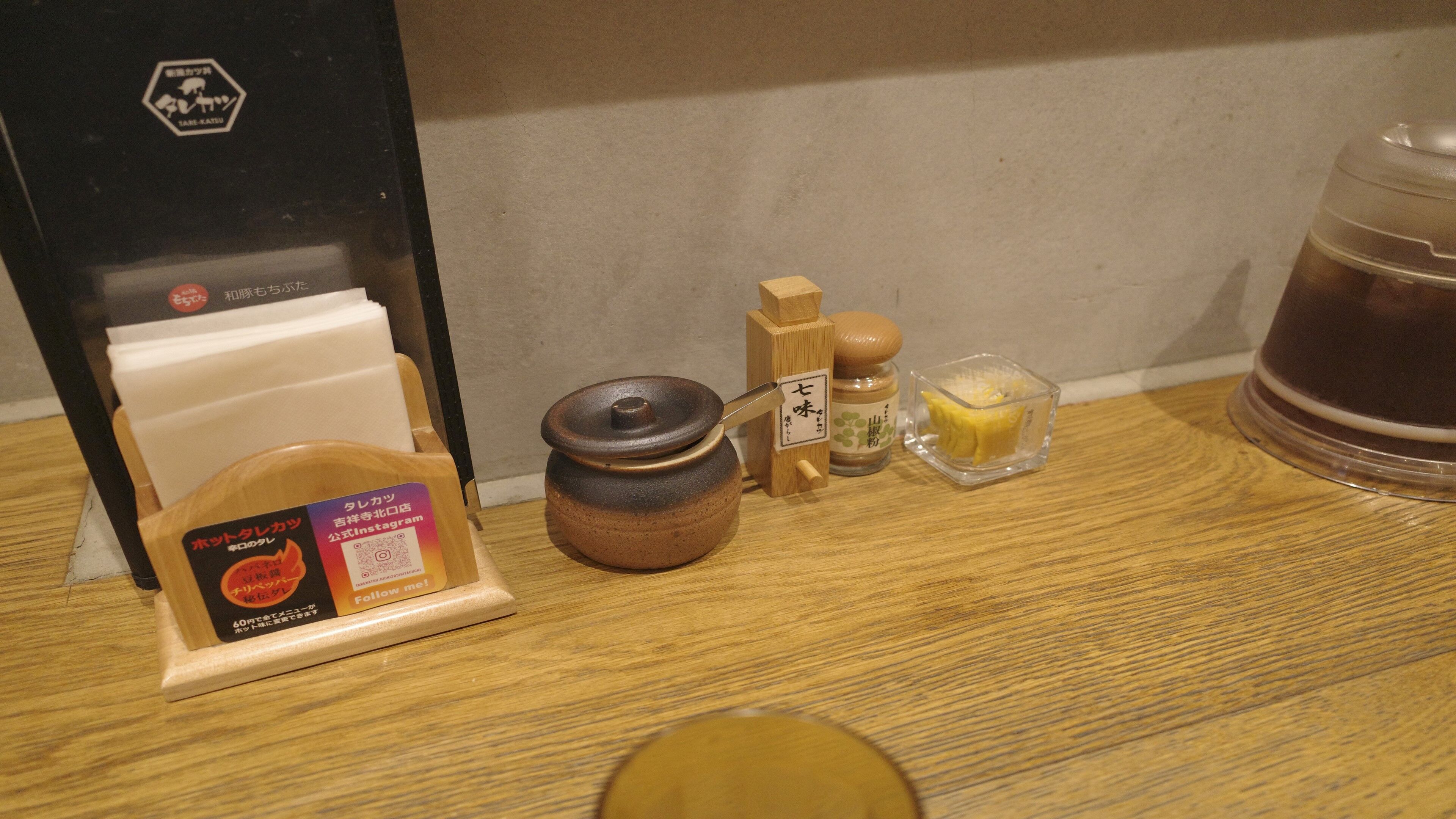 サクッと料理を注文したら、しばし正面に置かれた調味料を見ながら料理ができあがるのを待つことにします。