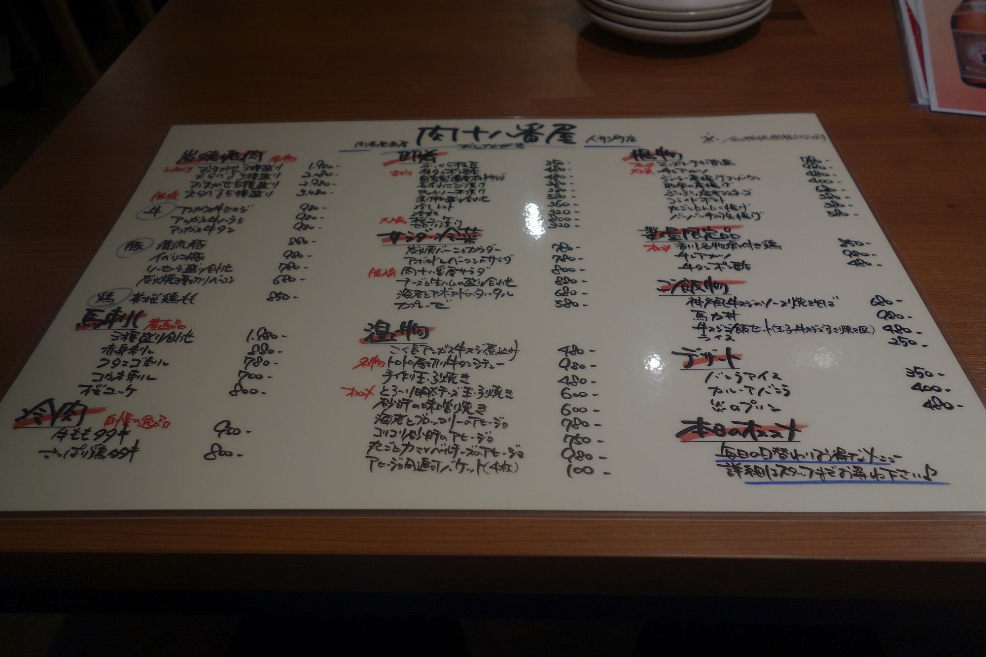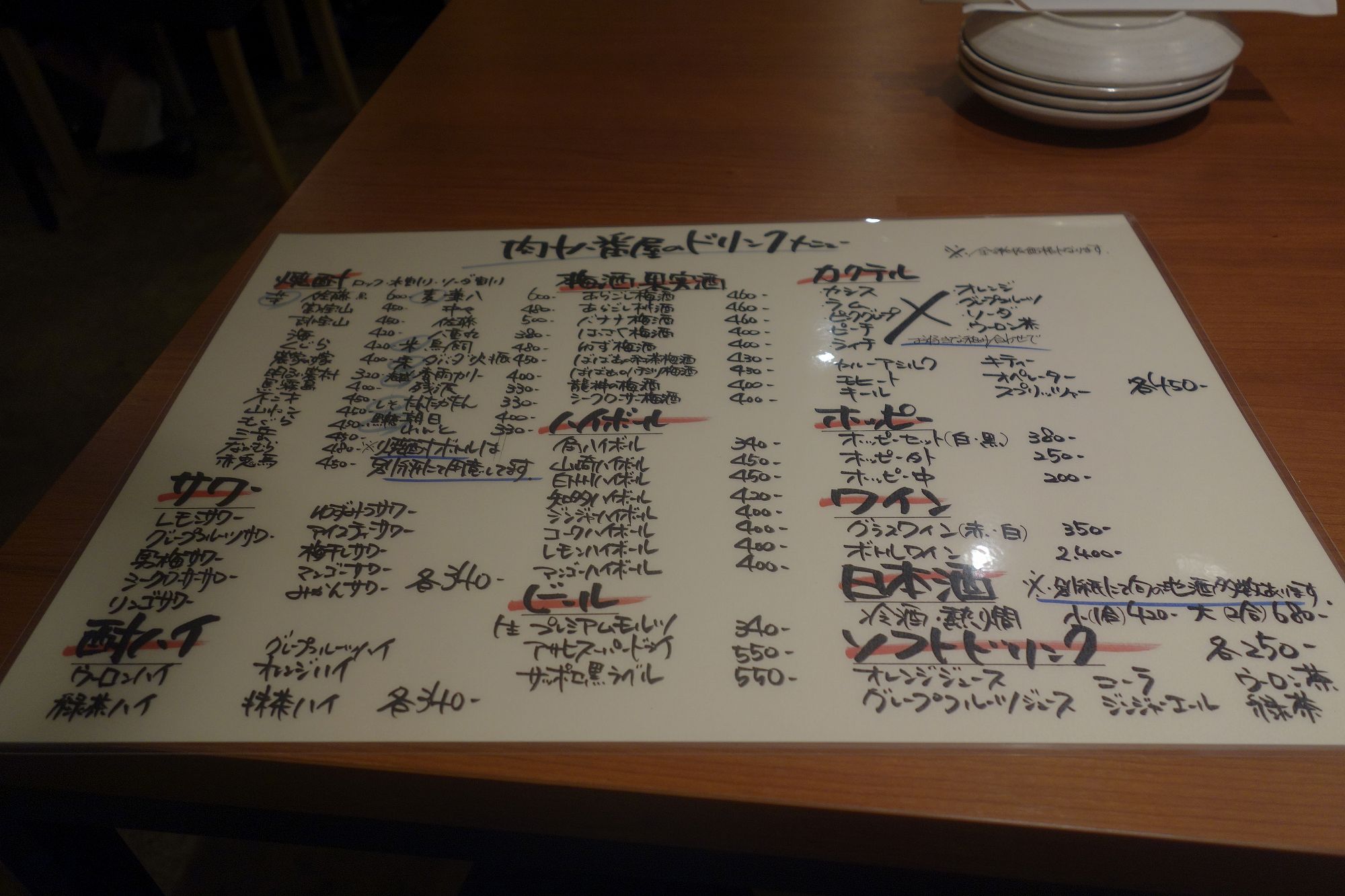 早速料理メニューを見ていくと、炭焼き肉料理、馬刺し、冷肉、酒のつまみ、サラダ、温菜、揚げ物、数量限定品、ご飯物、デザート、本日のおすすめメニューと大変シンプル。
