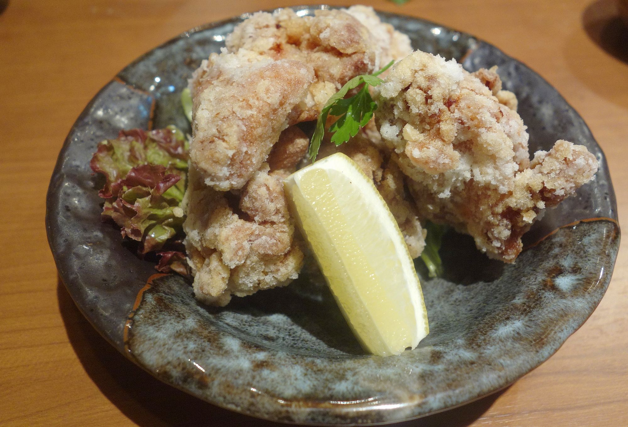 続いて注文したジューシー唐揚げ480円は、竜田揚げの様な姿をした鶏の唐揚げで