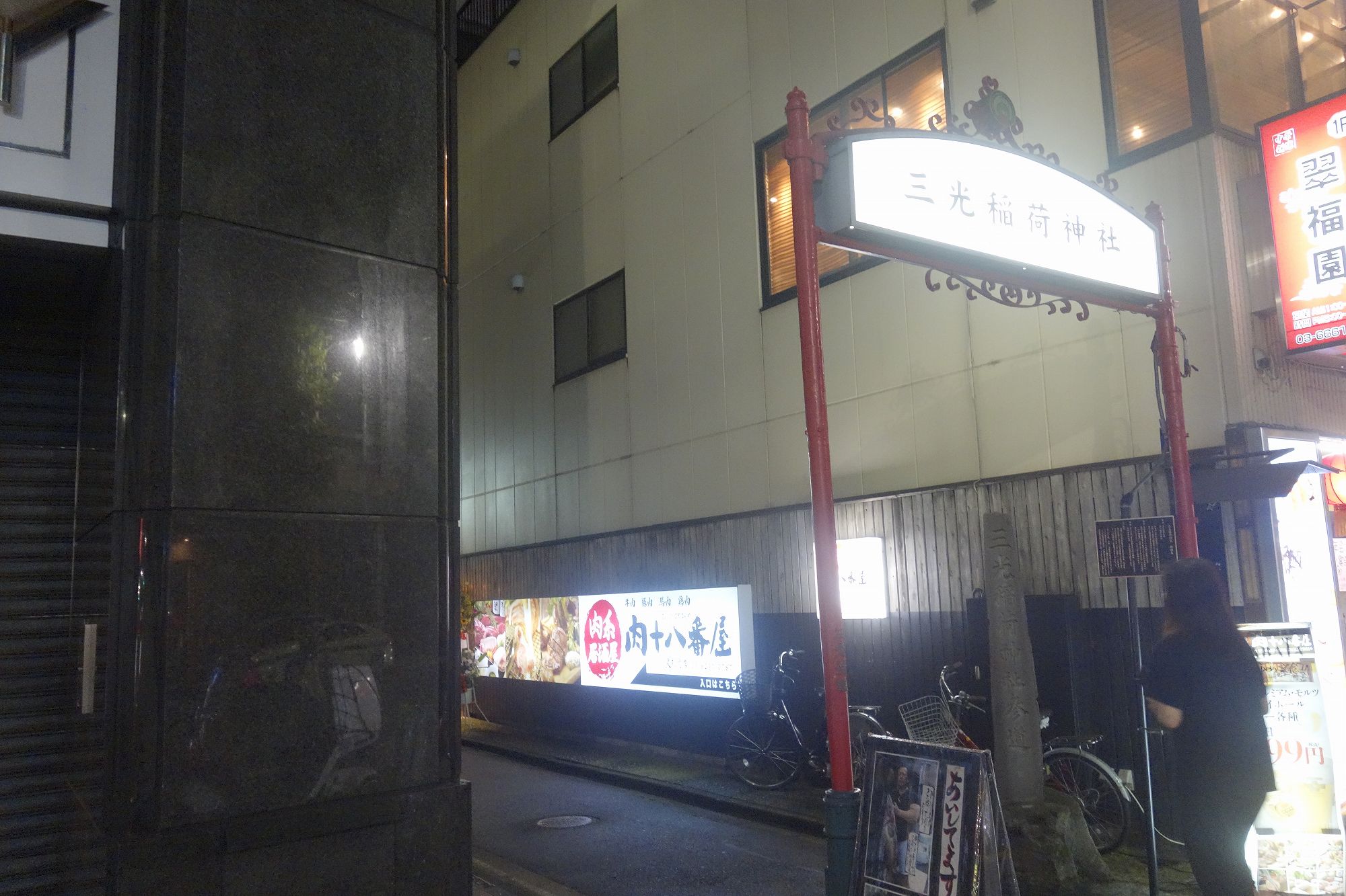 肉十八番屋へは、三光稲荷神社の参道を進み