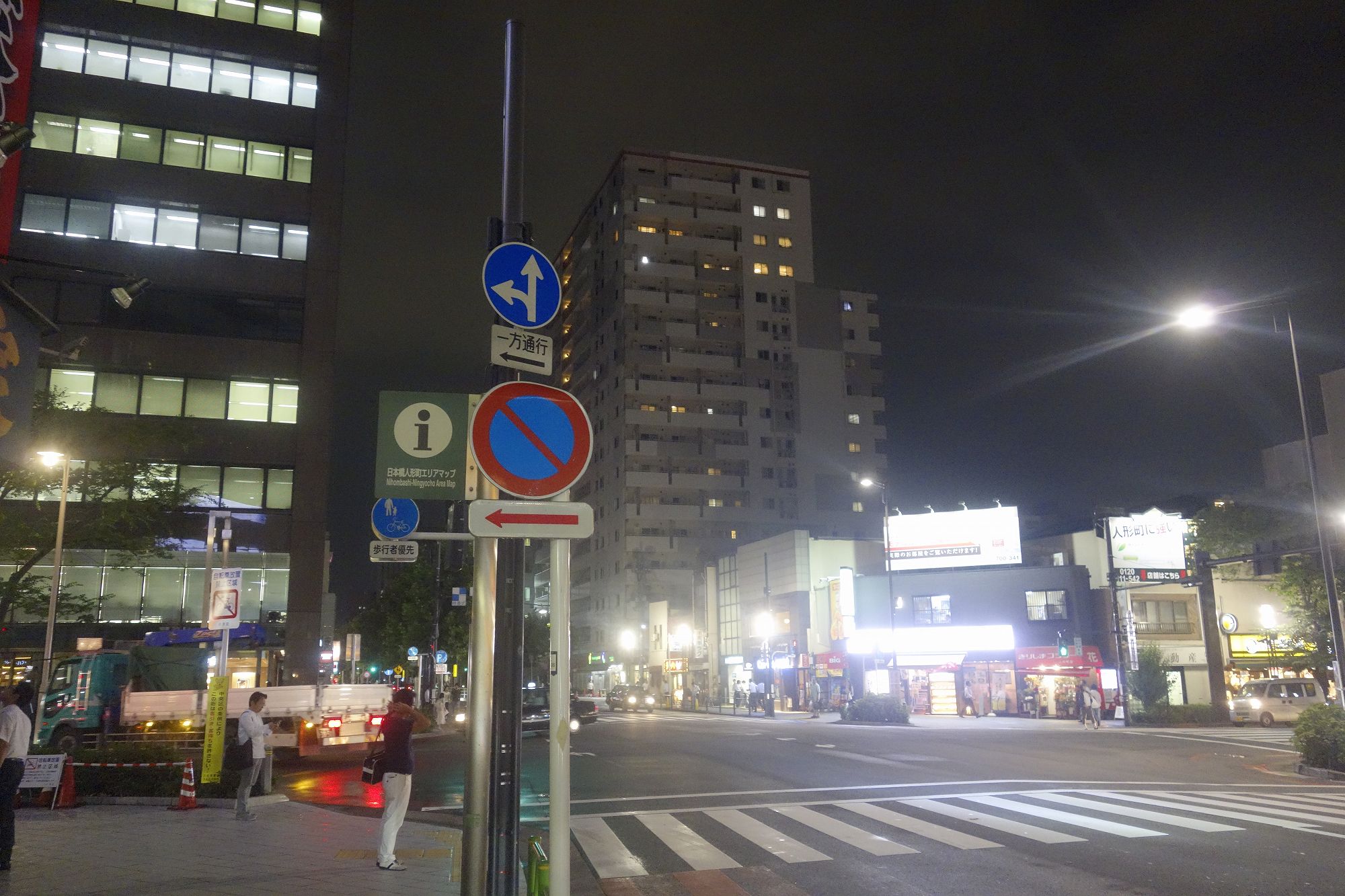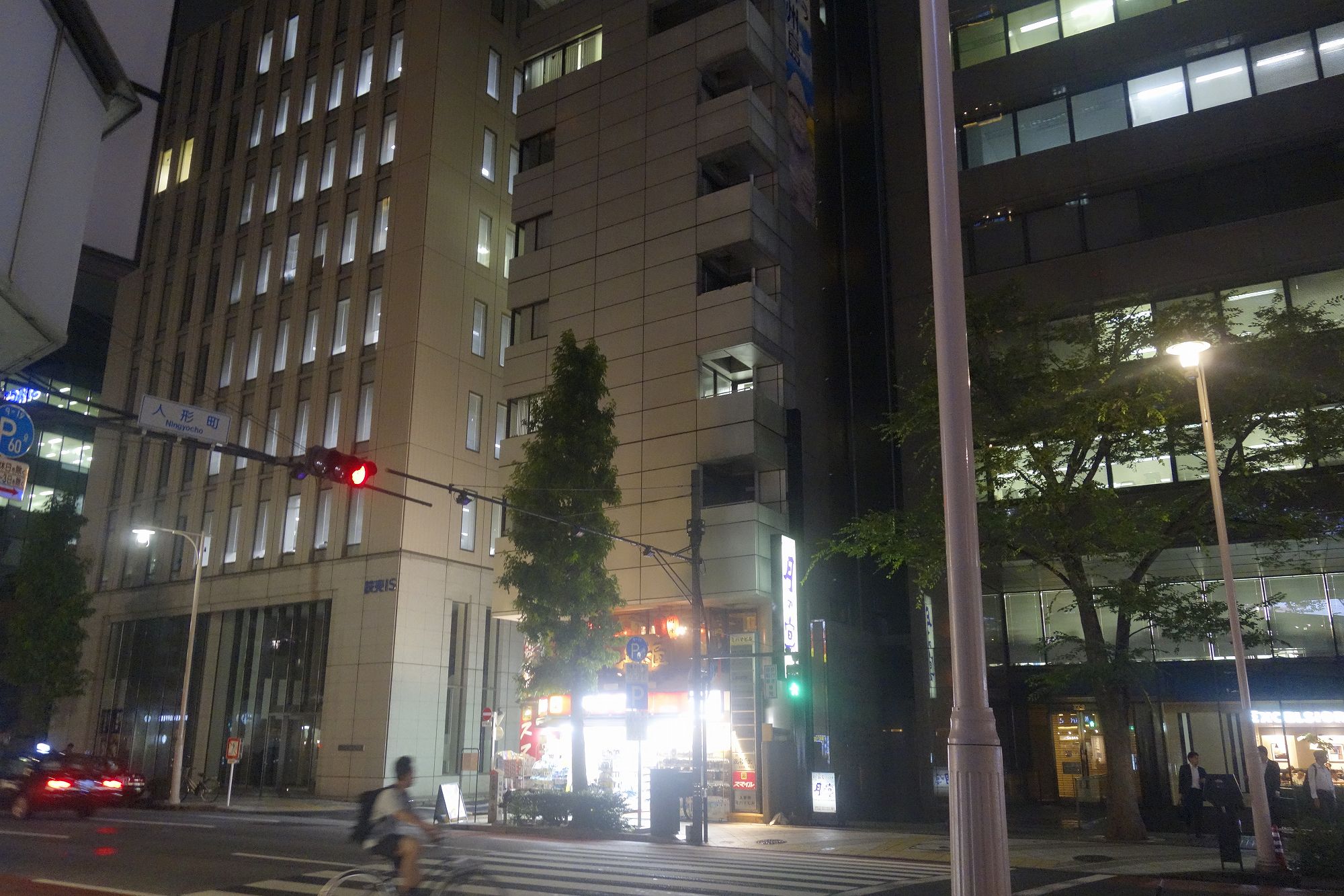 人形町駅から小伝馬町駅方面はビジネス街とあって、夜間は比較的静かな雰囲気で
