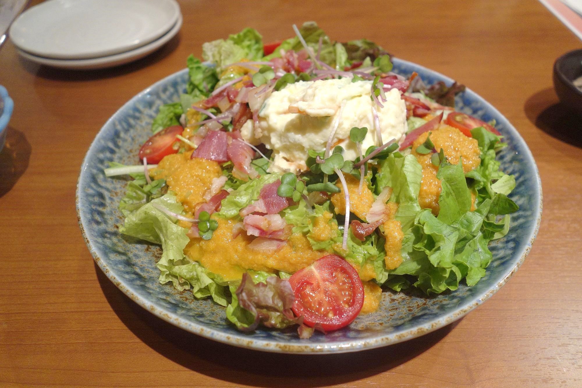 お店の名前を冠した、肉十八番屋サラダ800円は