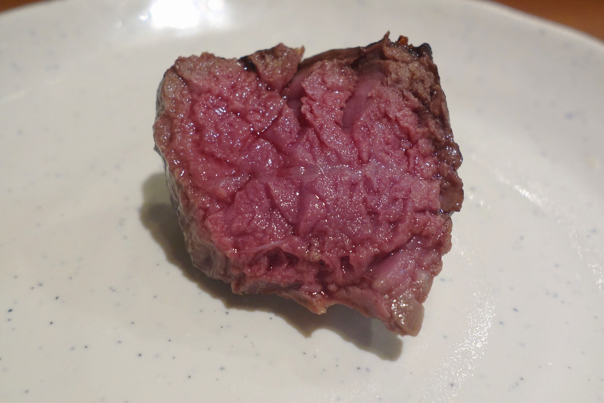 まずは素のまま牛カツを食べてみると、赤身ならではの旨味がたっぷり感じられ、レアな揚げ加減も相まってフレッシュな美味しさを感じます。
