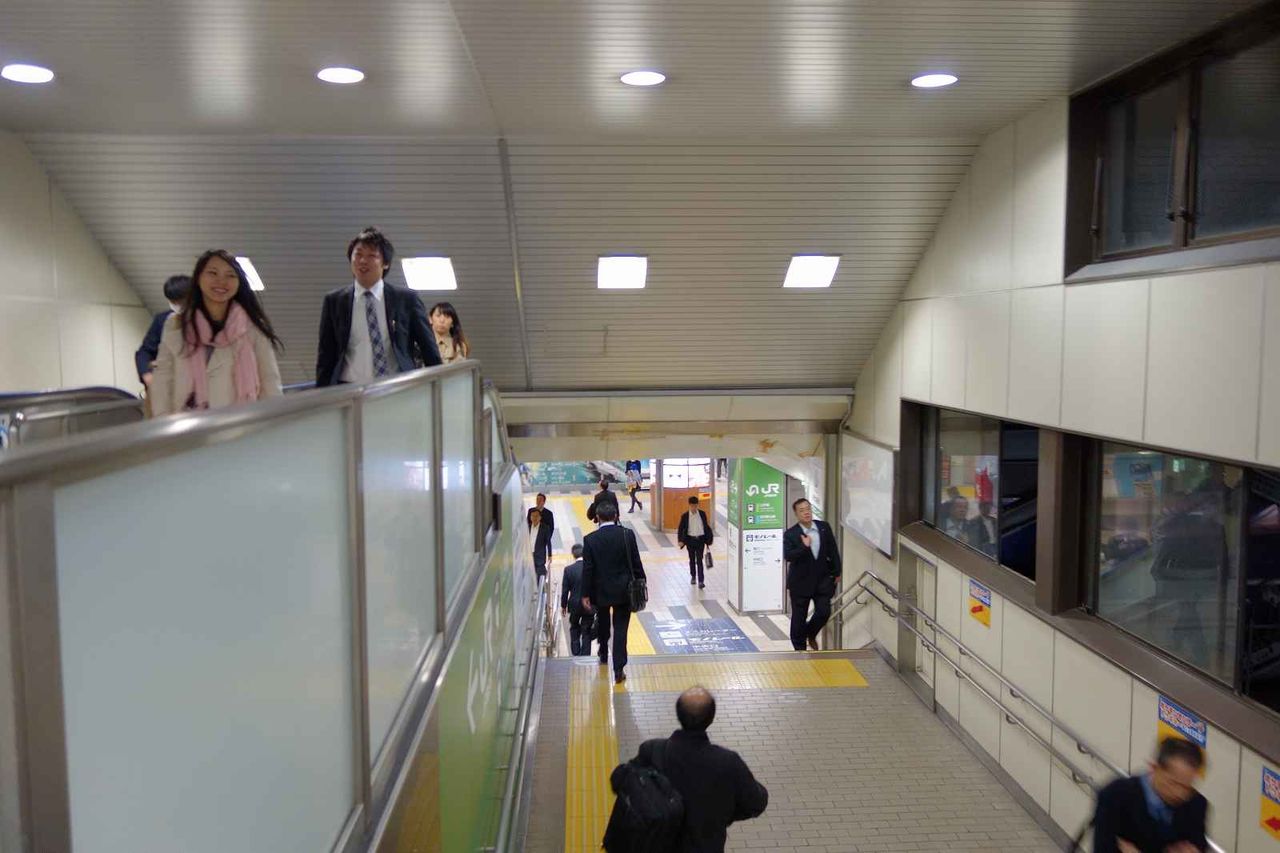 他の駅と比べて異様に登坂能力が高いエスカレーターで駅改札へ移動し