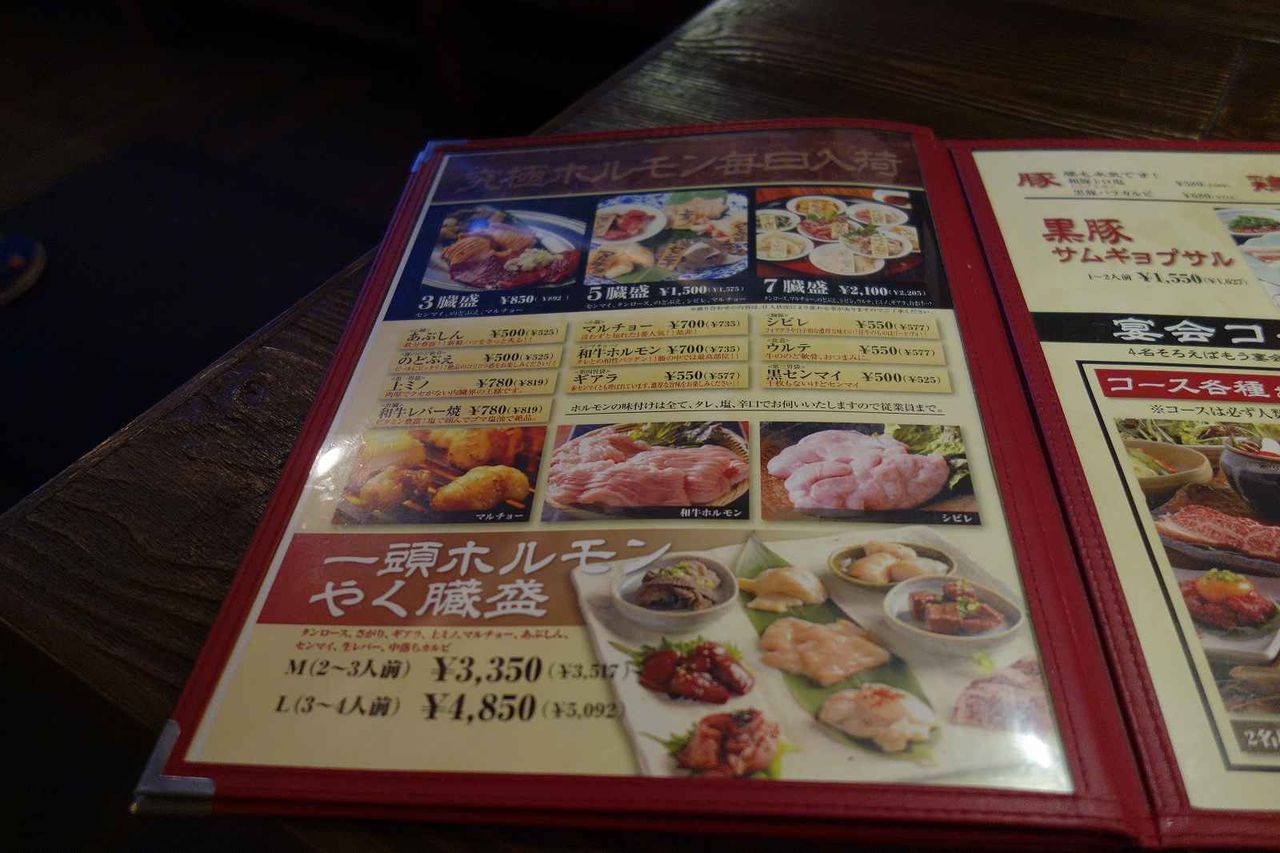 ホルモンの3種、5種、7種盛りと1頭ホルモンやく臓盛