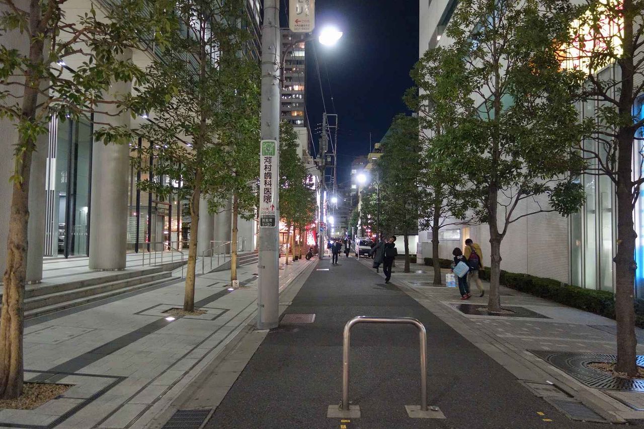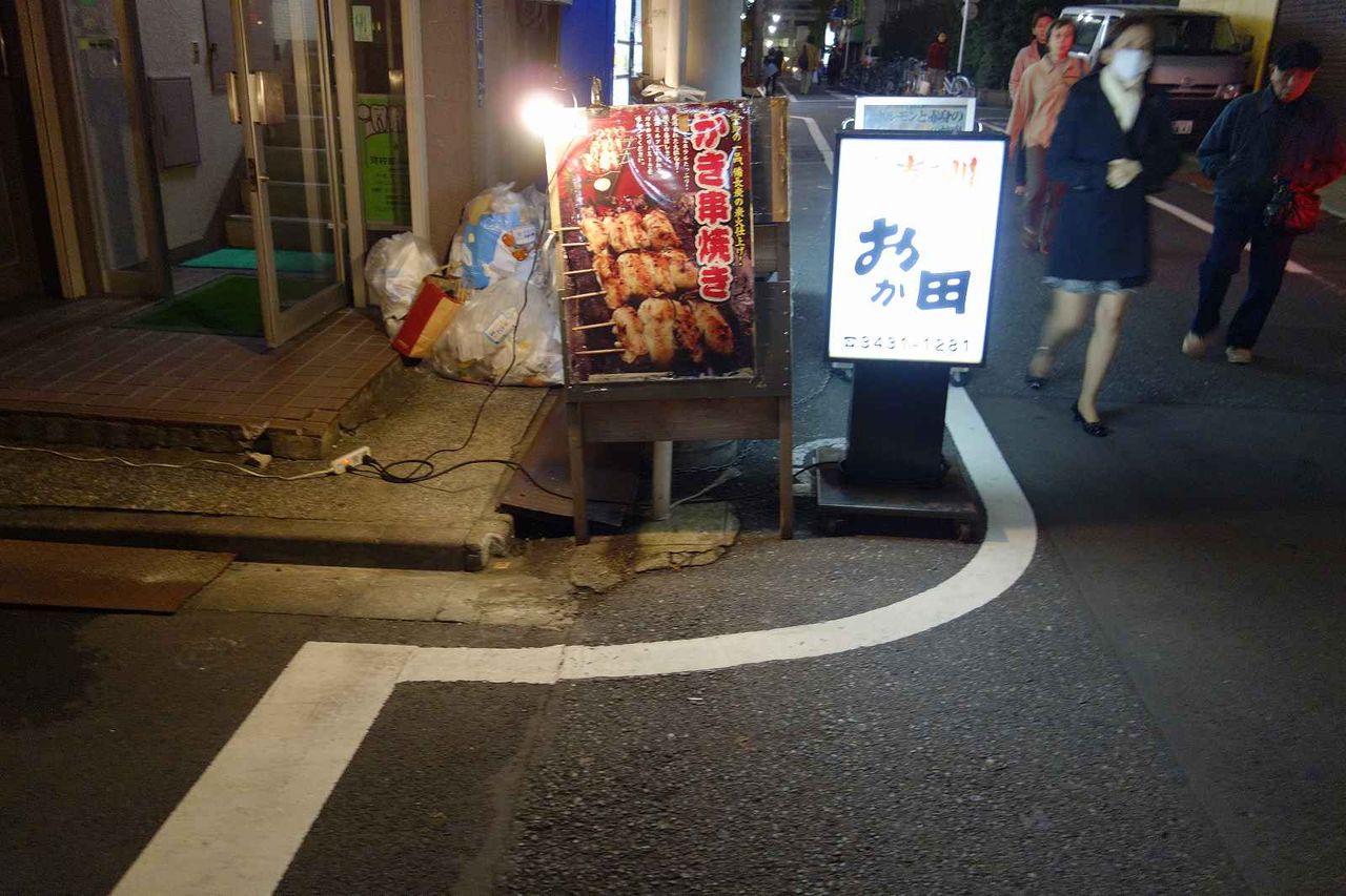 焼き鳥おか田の看板が見えてきた所で左へと曲がり