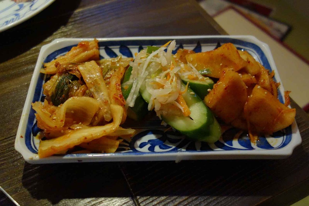 焼き肉を食べる前に箸休め代わりのキムチ盛り合わせLサイズ690円を注文し