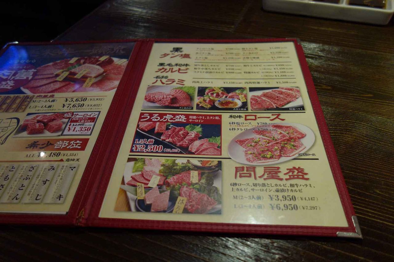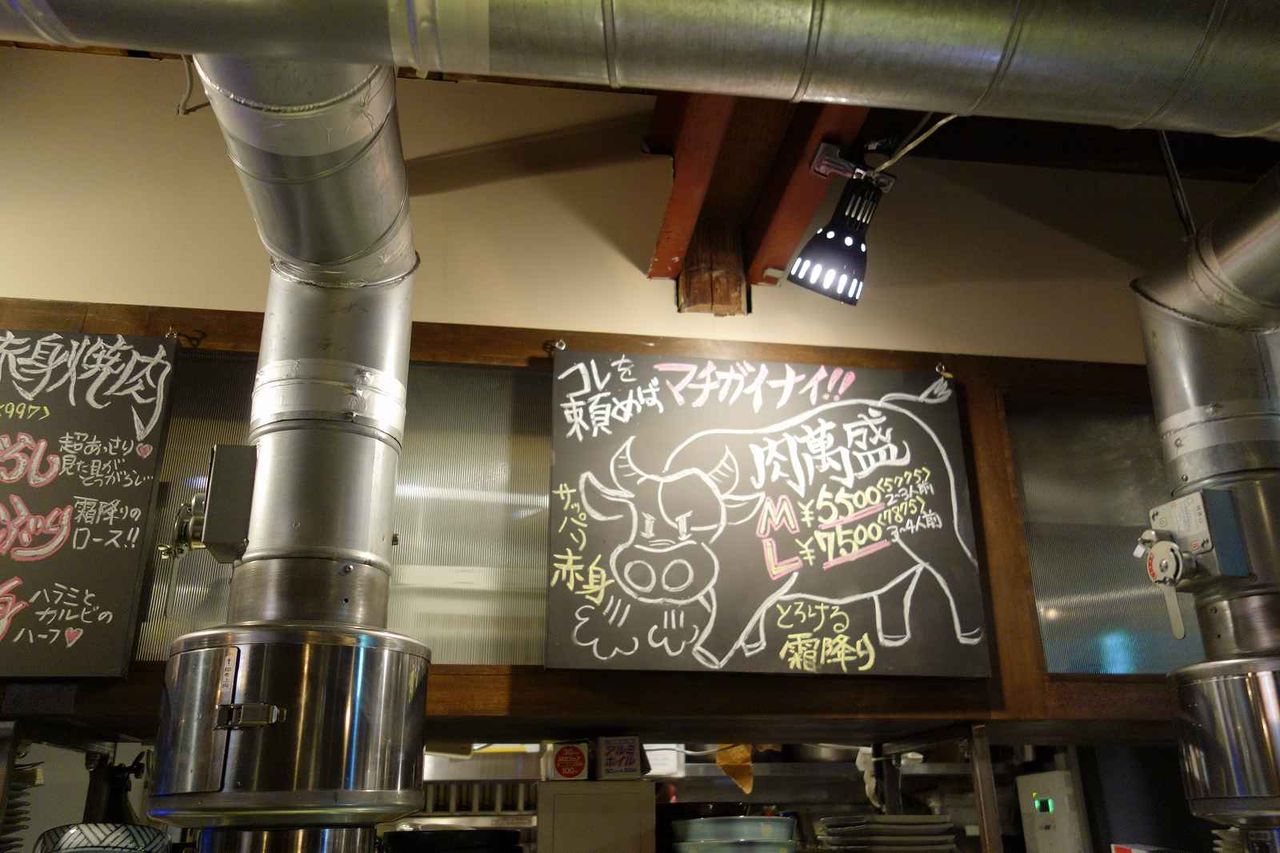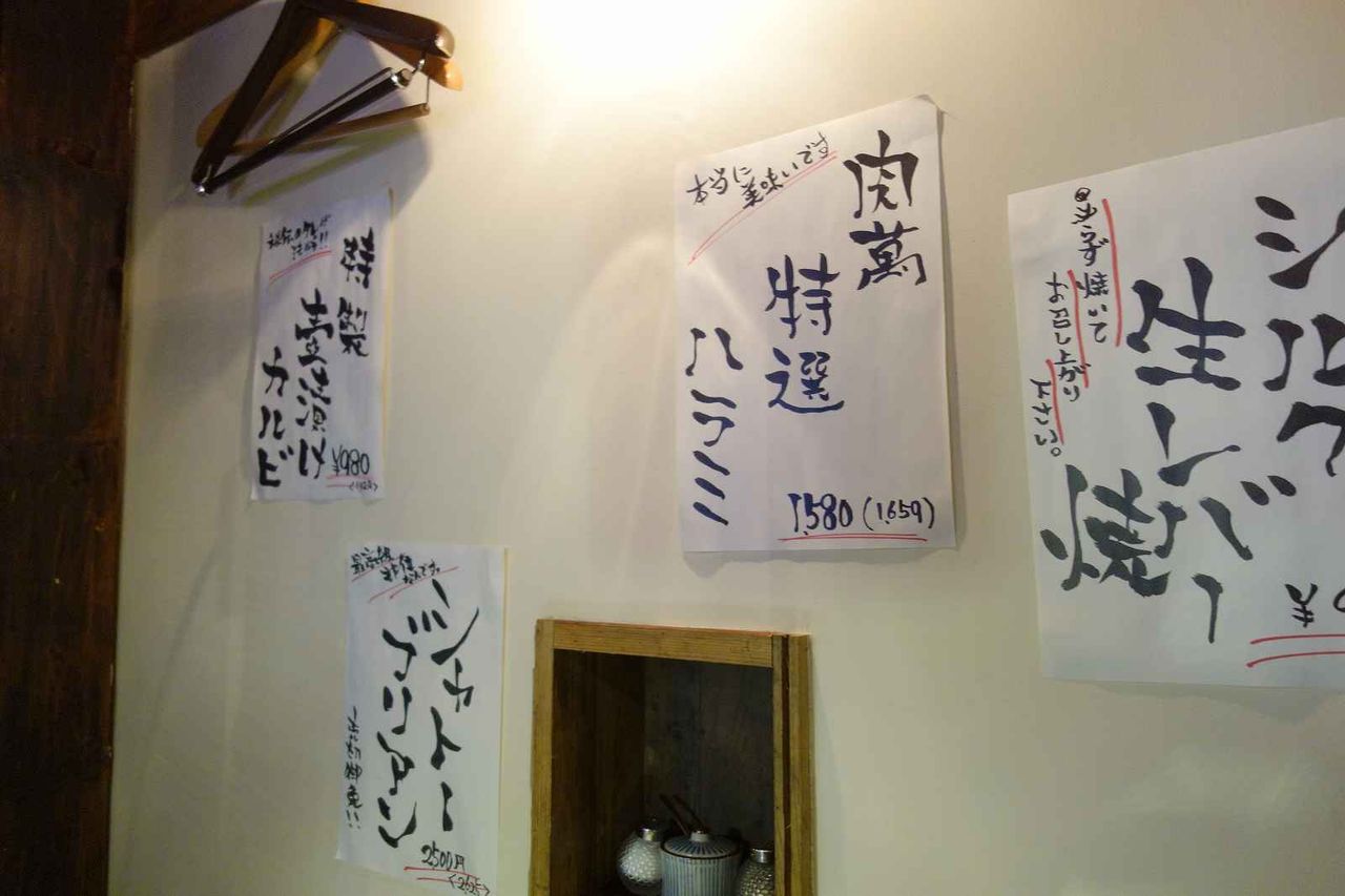 席に座ってすぐ近くの壁を見ると、ハラミやカルビなども売りなようです。