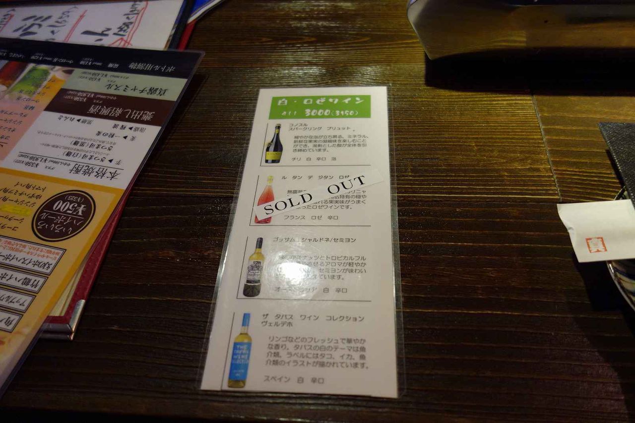 まずはメニュー表を見ていくと、白・ロゼワインのボトル※ALL3000円